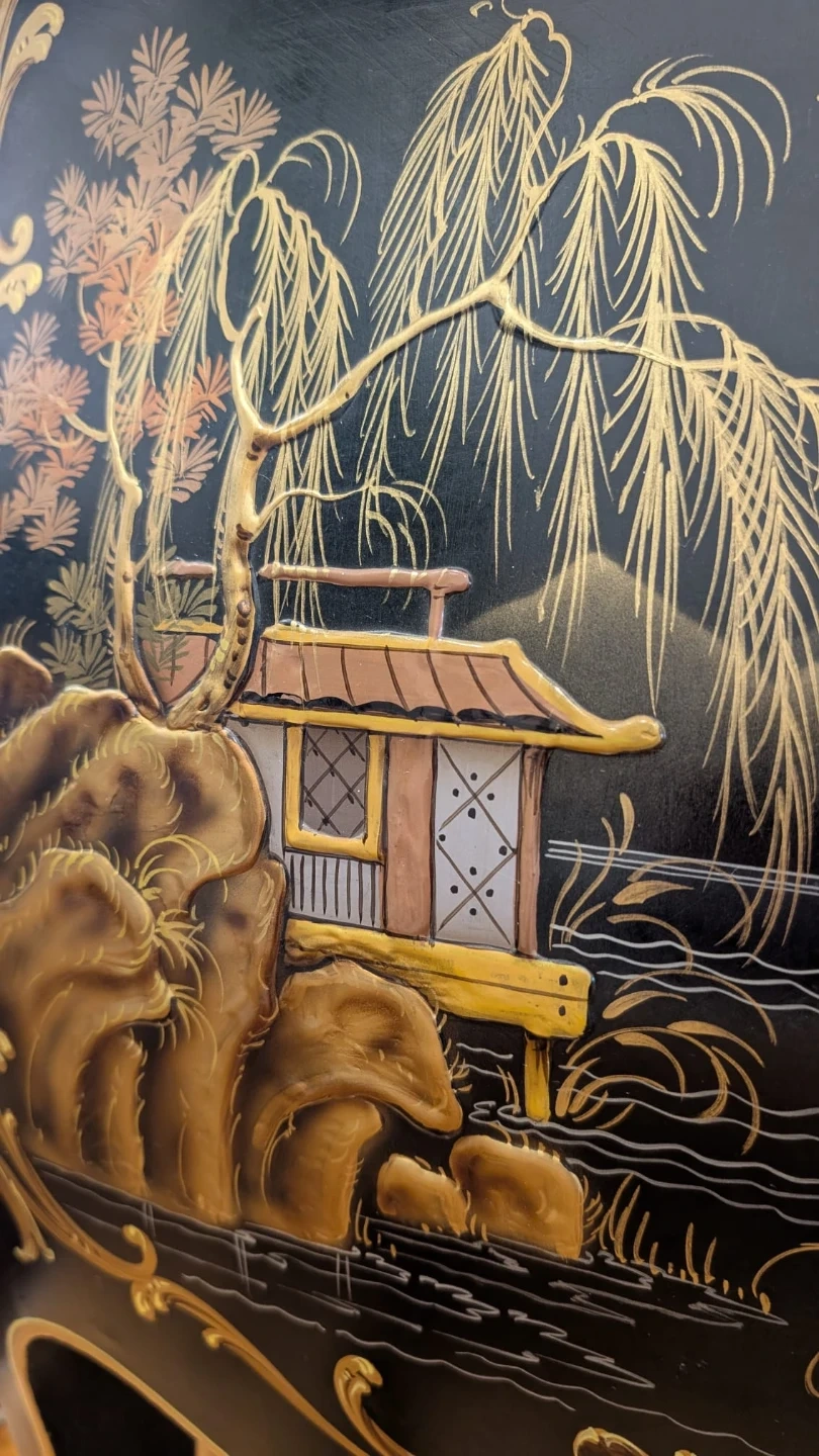 Overall good vintage condition , some black lacquer removed from drawer rubbing
