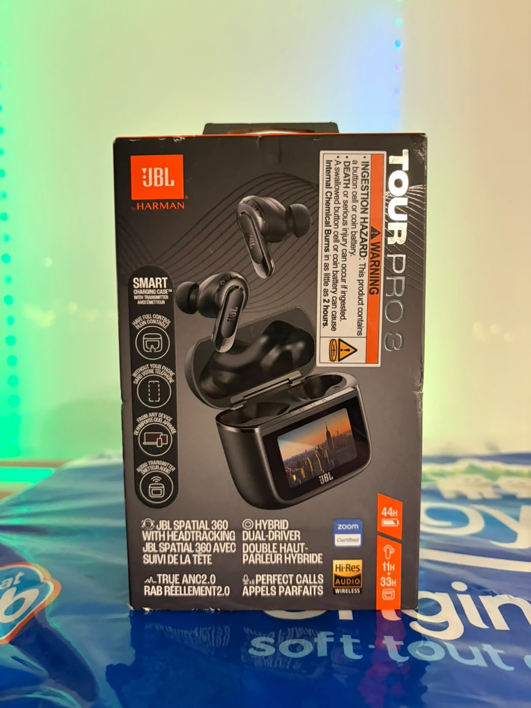Selling a brand new pair of JBL Tour Pro 3 earbuds. They offer true wireless noise cancelling with hybrid dual-driver technology. They feature JBL Spatial Sound, they come with a smart charging case and also dual as an audio transmitter. The earbuds provide up to 44 hours of playback with the case. They're great for immersive listening on the go!