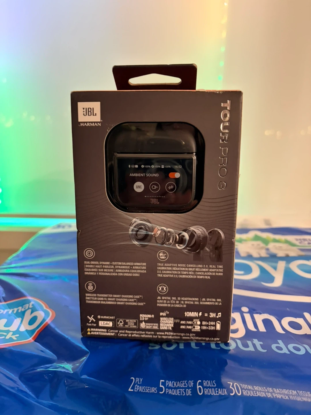 Selling a brand new pair of JBL Tour Pro 3 earbuds. They offer true wireless noise cancelling with hybrid dual-driver technology. They feature JBL Spatial Sound, they come with a smart charging case and also dual as an audio transmitter. The earbuds provide up to 44 hours of playback with the case. They're great for immersive listening on the go!