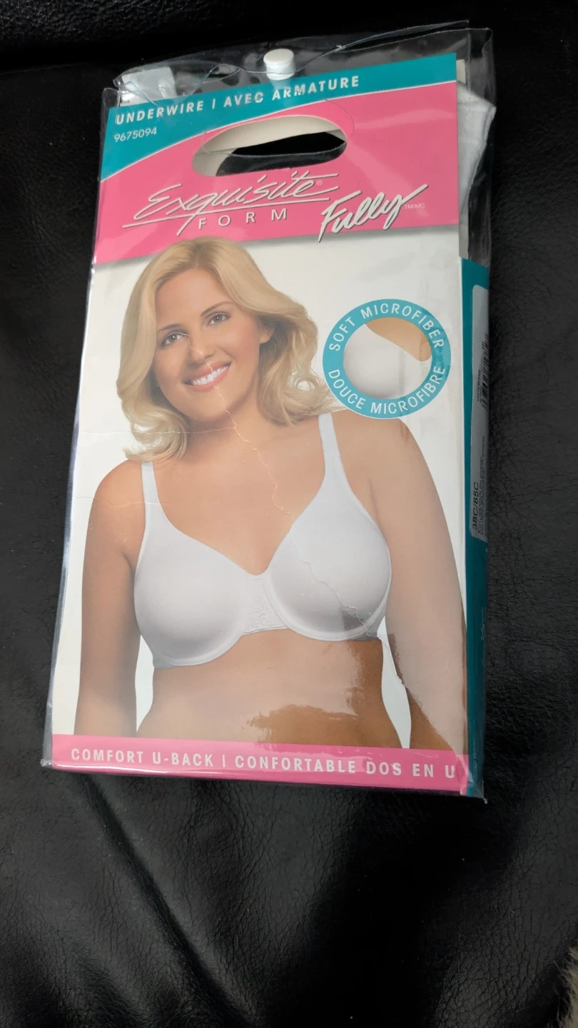'Exquisite Form' underwire bra. Size 38C. Super soft fabric lines the cups. Great comfort and support when you need a fuller bra..not a bigger bra. Comfort U-back and stay put straps.
