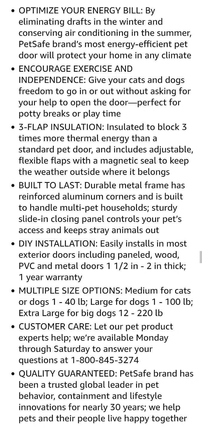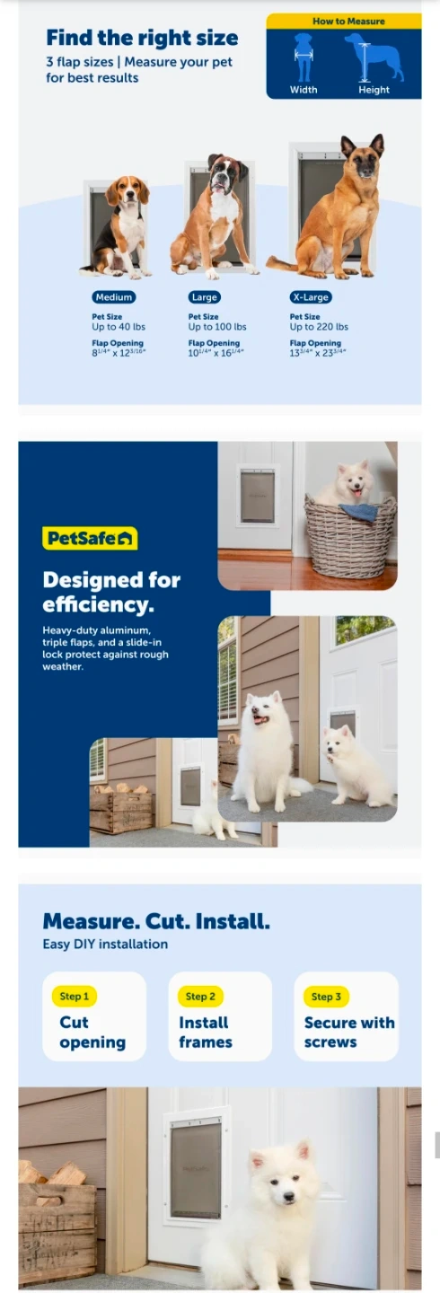 * Triple-flap insulation: Blocks 3 times more thermal energy than a standard pet door.