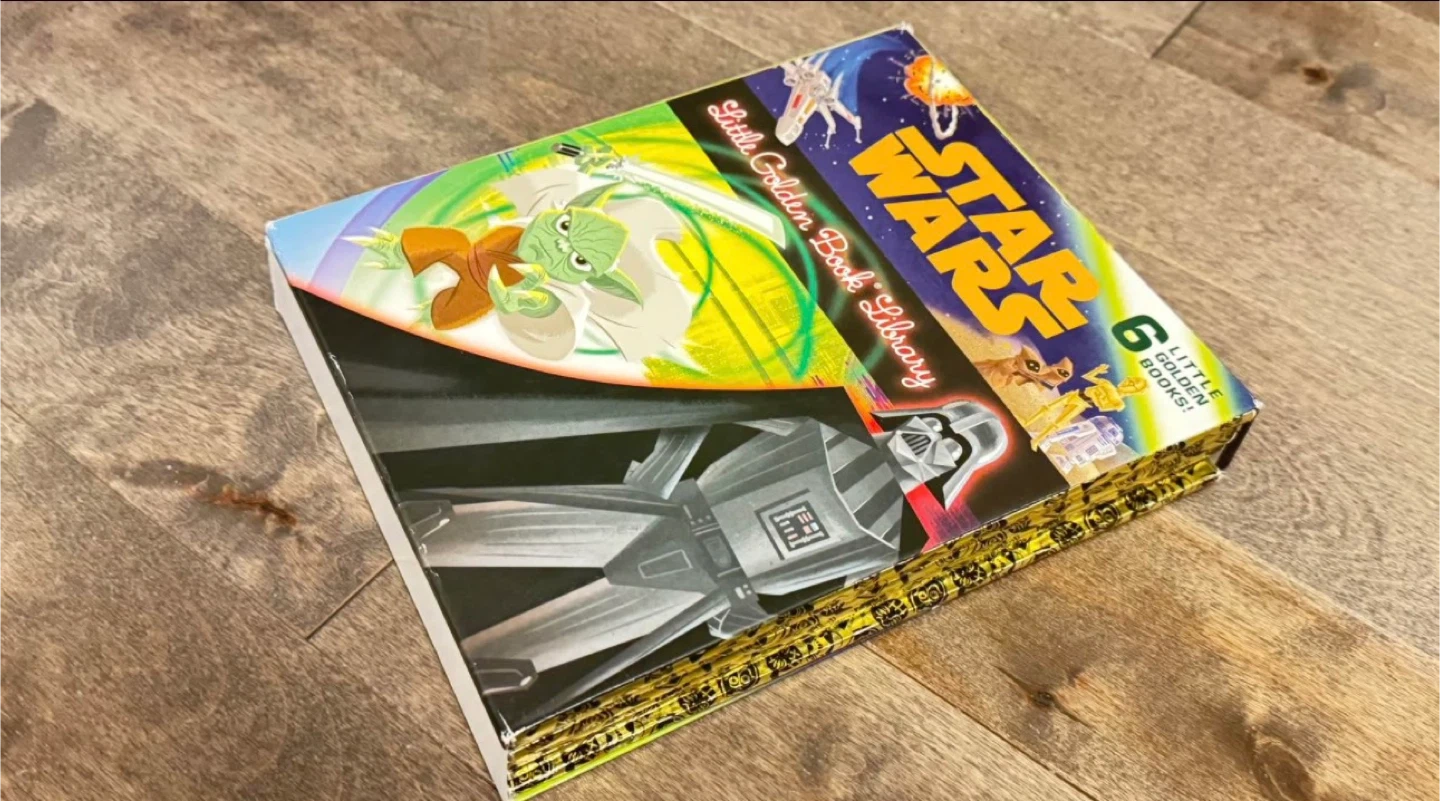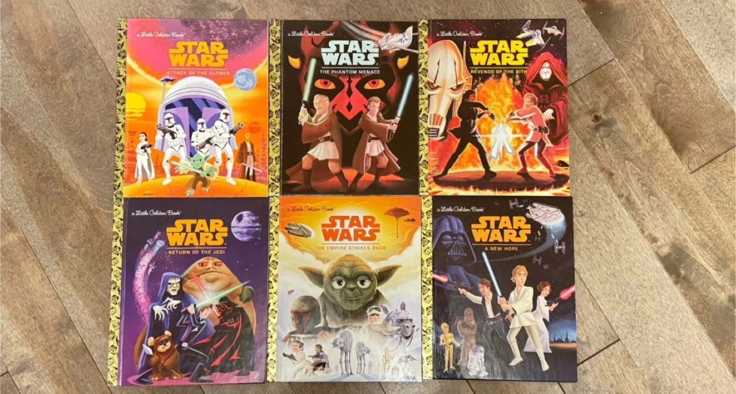 This Star Wars Little Golden Book Library features six classic tales from the saga. Includes Attack of the Clones, The Phantom Menace, Revenge of the Sith, Return of the Jedi, The Empire Strikes Back, and A New Hope. These are perfect for young Star Wars fans to dive into the epic stories!