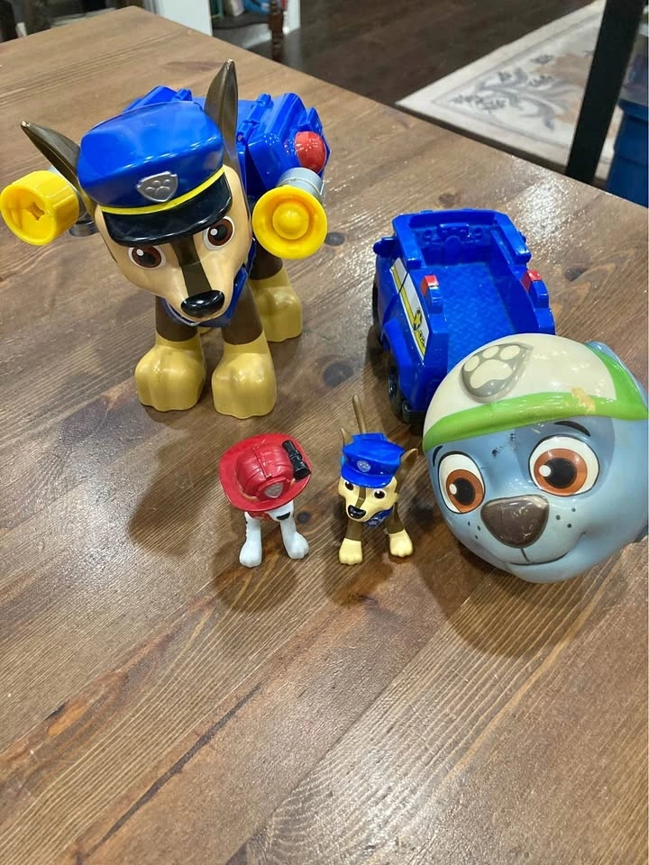 PAW Patrol toy lot featuring Chase, Marshall, and Rocky. Great bundle for imaginative play or adding to an existing PAW Patrol collection.
