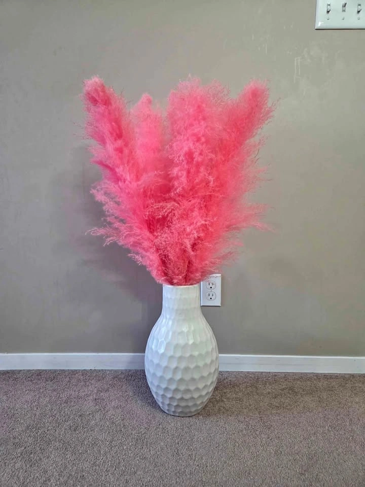Delicate 6 stems of pampas grass in a romantic pink shade. Perfect for home decor, weddings, photo zones, or gift arrangements. High-quality artificial stems look realistic and require no maintenance, adding lightness and coziness to any space.