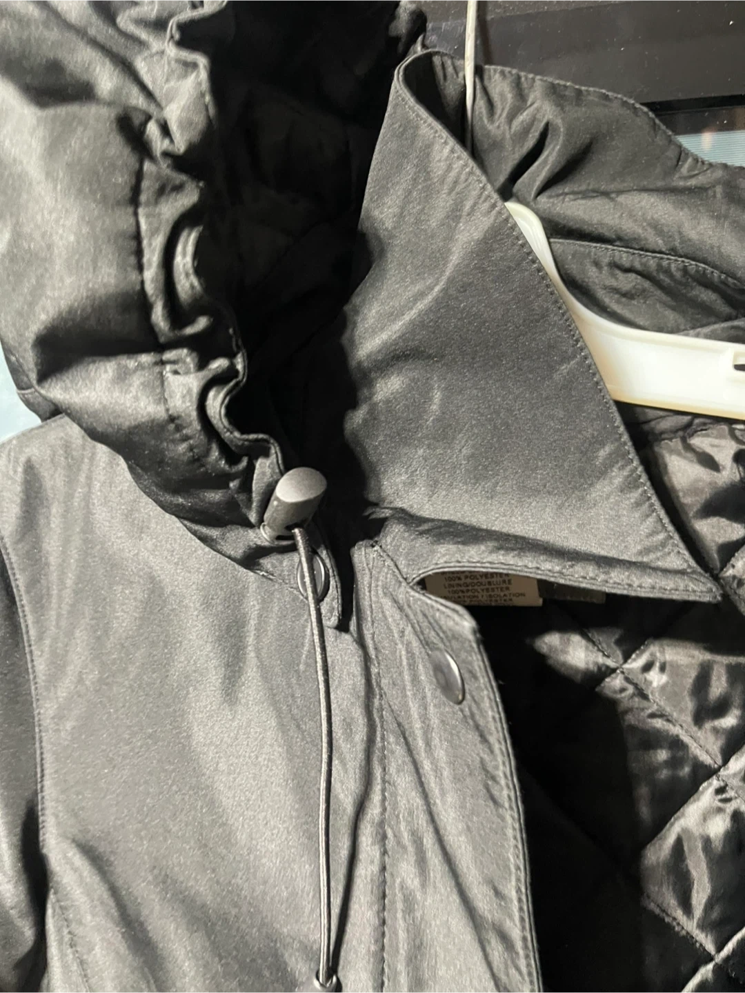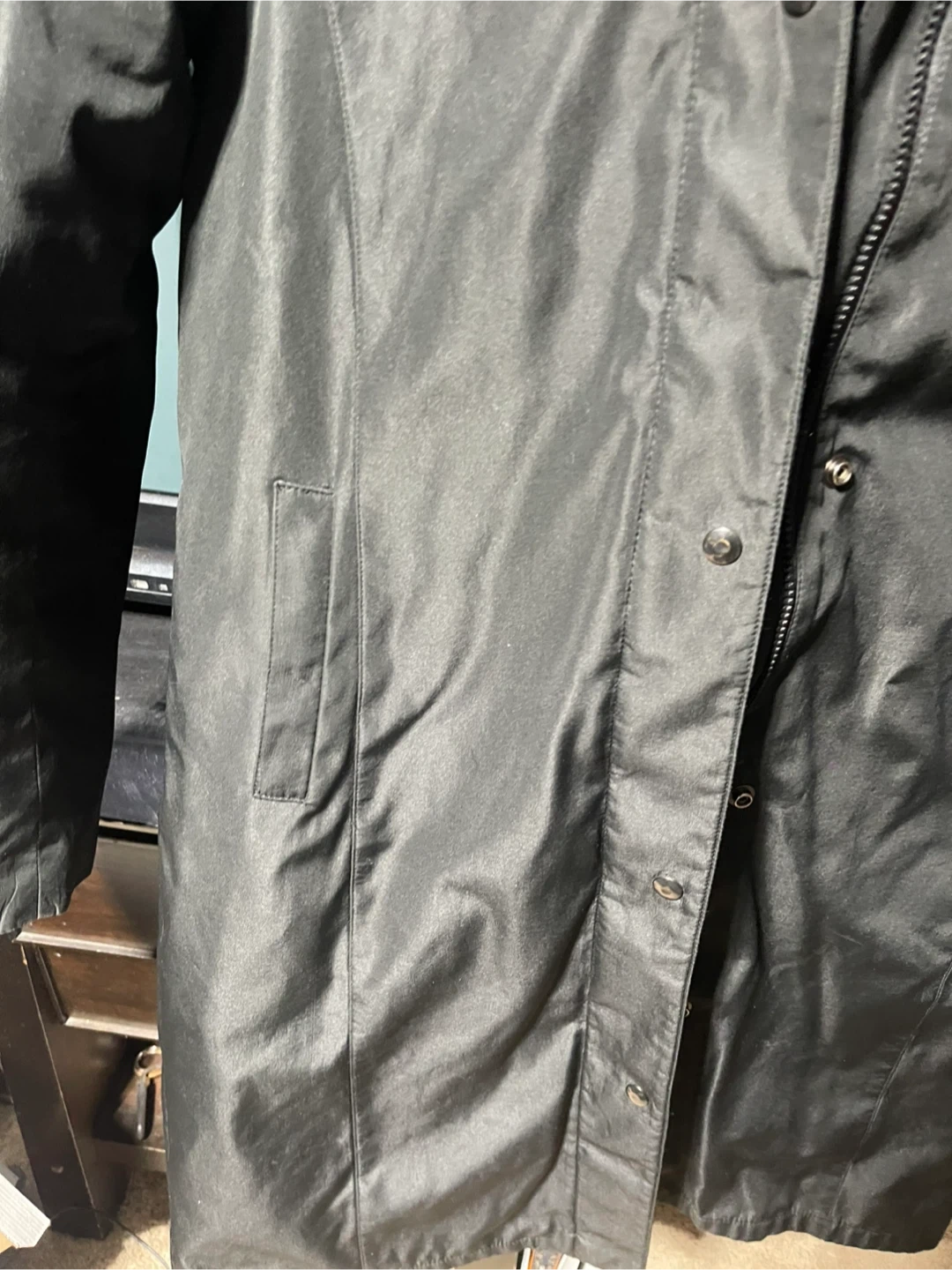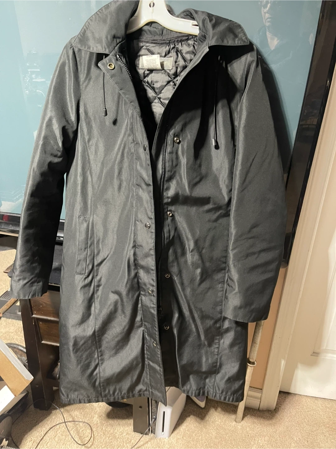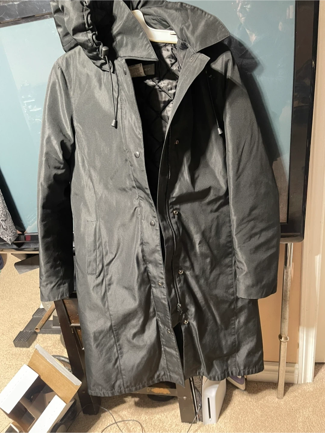 Selling a Linden Grey black hooded rain coat.Removable liner It's in great condition and perfect for those rainy days!