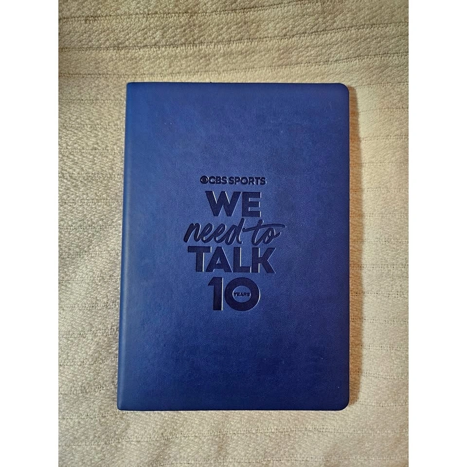 Spector & Co CBS Sports We Need to Talk 10 Year Anniversary Debossed Branded ST4340 Donald Soft Cover Lined Journal. Blue. Product dimensions: 5.5 x 8.25 in. Vinyl journal with 160 ivory lined, perforated pages (non-refillable).