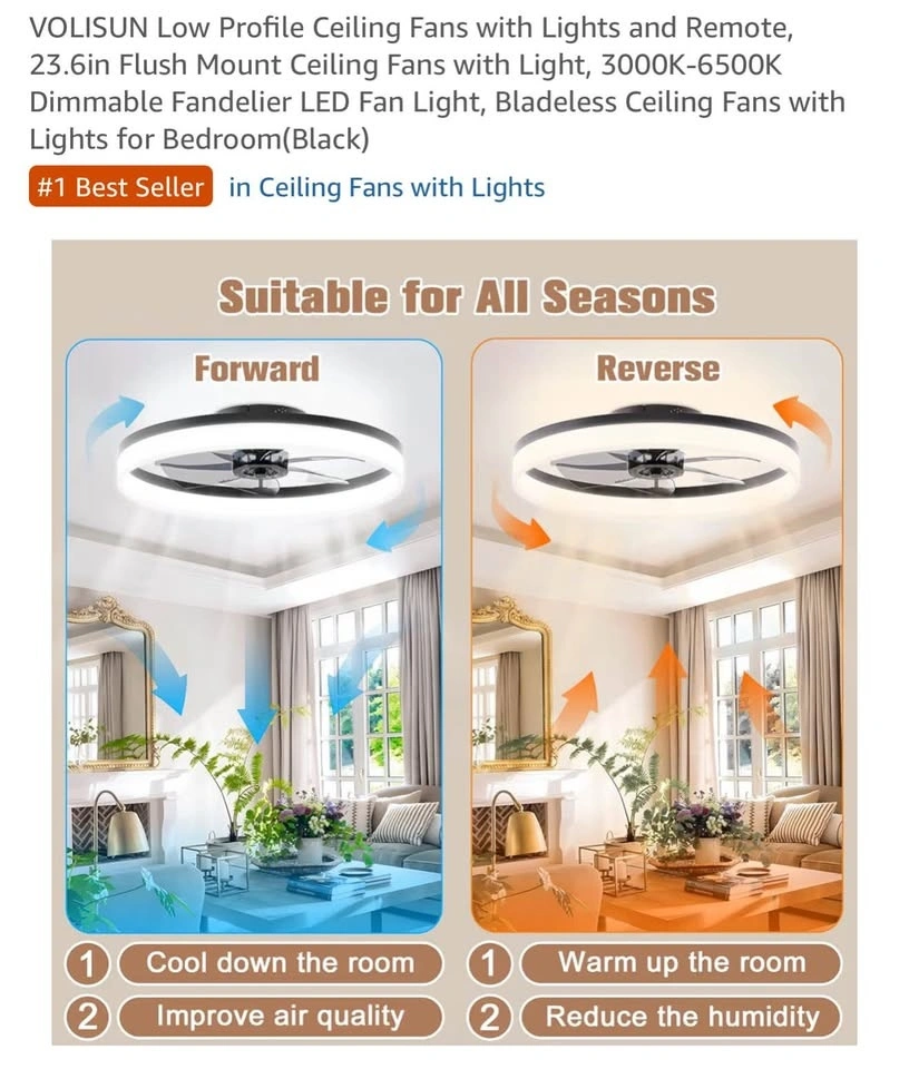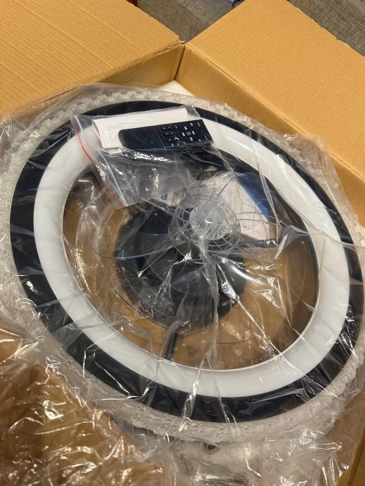 Upgrade your space with these sleek Garwarm Fandelier ceiling fans. Their low-profile design makes them perfect for bedrooms or living rooms with standard or low ceilings. I have 2 different designs/models available! Message me to see photos of the second style. Features dimmable LED lighting to suit any mood. Includes summer/winter modes for cooling and winter air circulation. Offers 6 wind speeds, all controlled via remote. Elegant black finish fits any modern decor.