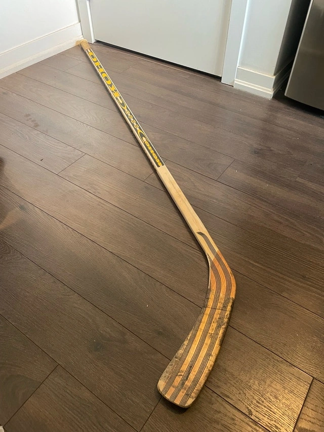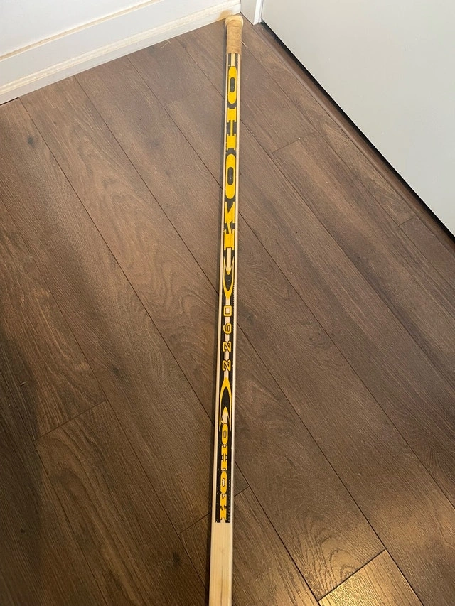 I'm selling a used Koho hockey stick, perfect for collectors or recreational players. This vintage stick has been well-loved and shows signs of wear, but it's still ready for action on the ice. Get a piece of hockey history!