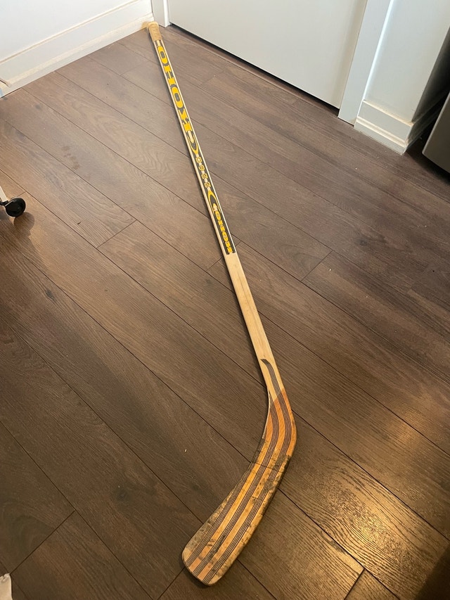 I'm selling a used Koho hockey stick, perfect for collectors or recreational players. This vintage stick has been well-loved and shows signs of wear, but it's still ready for action on the ice. Get a piece of hockey history!