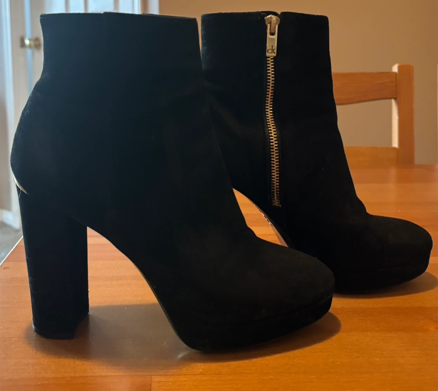 Buy & SellCalvin Klein Black Suede Ankle Boots Size 7.5Calvin Klein Black Suede Ankle Boots Size 7.5$15Selling a pair of Calvin Klein black suede ankle boots! They're in good condition and feature a chunky heel. Size US 7.5ConditionGoodSize7.5BrandCalvin KleinWHERE TO MEETCheck LocationView MapSELLERverifiedSWDowntown Toronto24521 reviews0 chats·0 favorites·26 viewsSEND CHAT TO SELLERHi SW! I’m interested in your listing.Hi SW! I’m interested in your listing.Get the Karrot app to chatSign In to chat