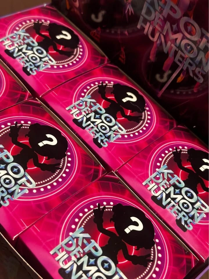 Unopened K-Pop Demon Hunters blind boxes. Each box contains one surprise figure. Random surprise card is also included in each box.