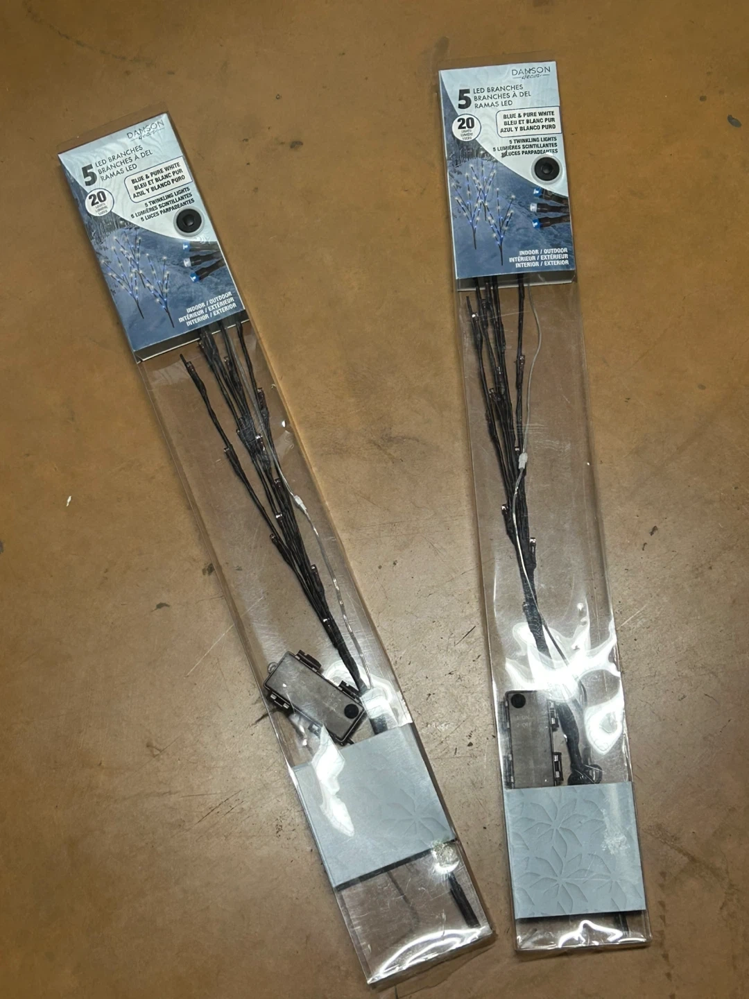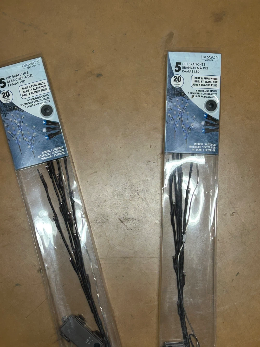 I have two sets of Danson Decor LED Branches for sale. They are brand new and still in their original packaging. Each set has 5 LED branches with 20 lights. They are blue and pure white, perfect for indoor or outdoor decoration!