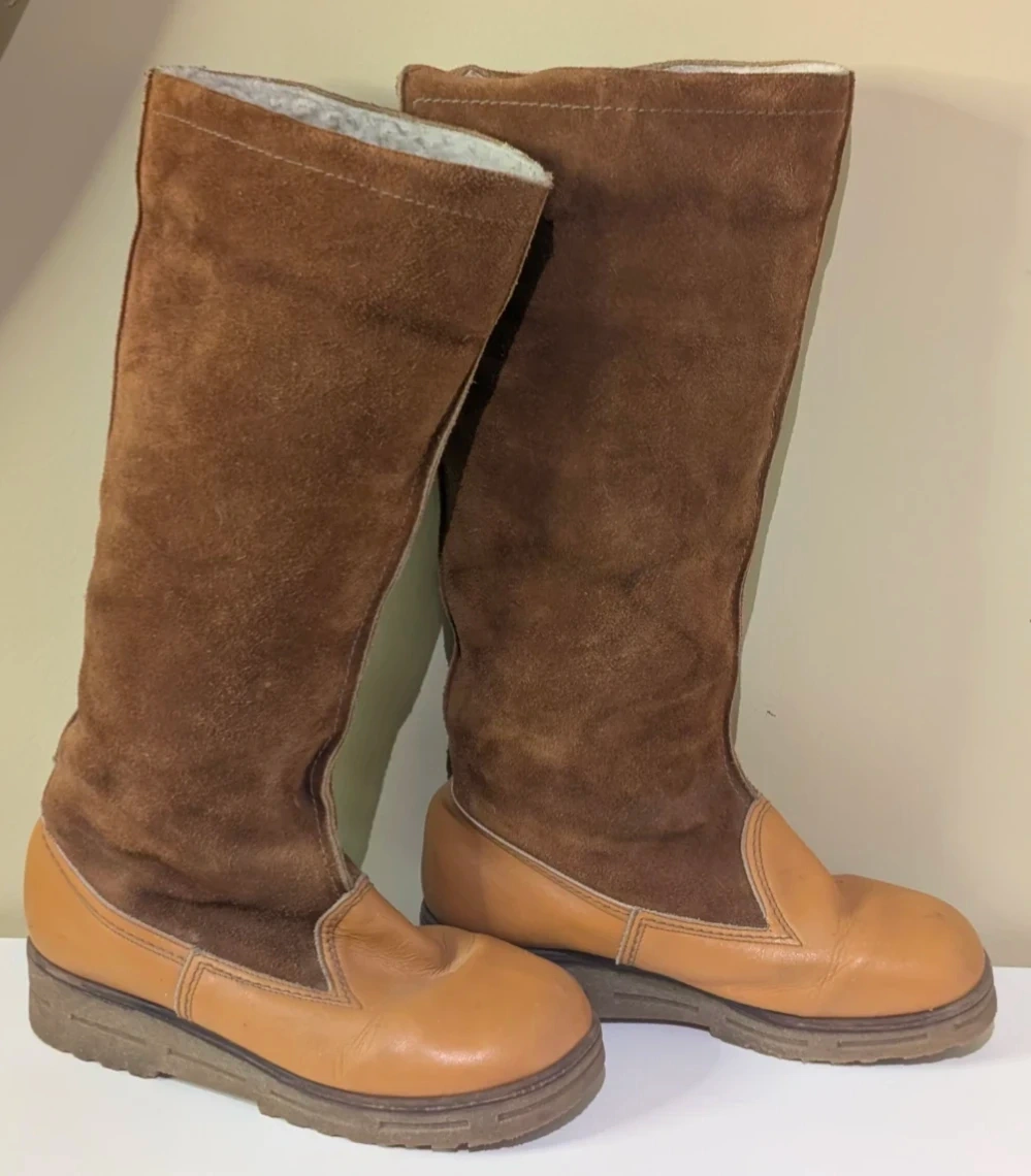 Cozy winter boots with a soft, shearling-style lining. Features a mix of suede and leather in a classic brown colour.