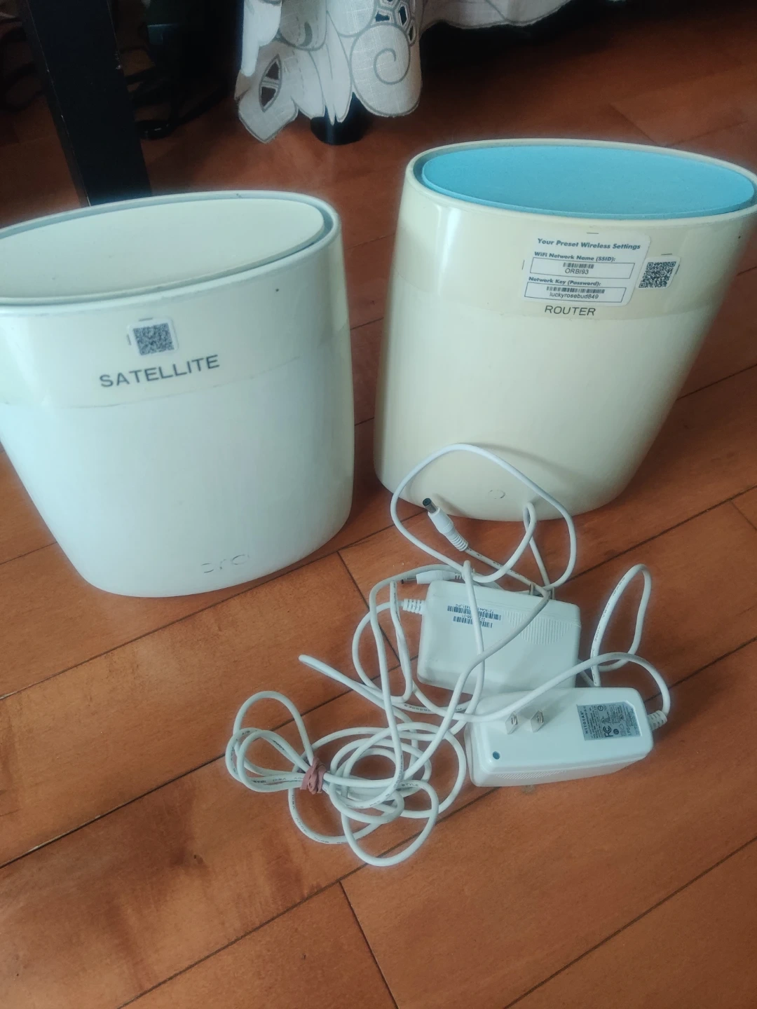 This is a NETGEAR Orbi system, including a router and a satellite. Power adapters are included. This mesh Wi-Fi system expands your wireless network's coverage.