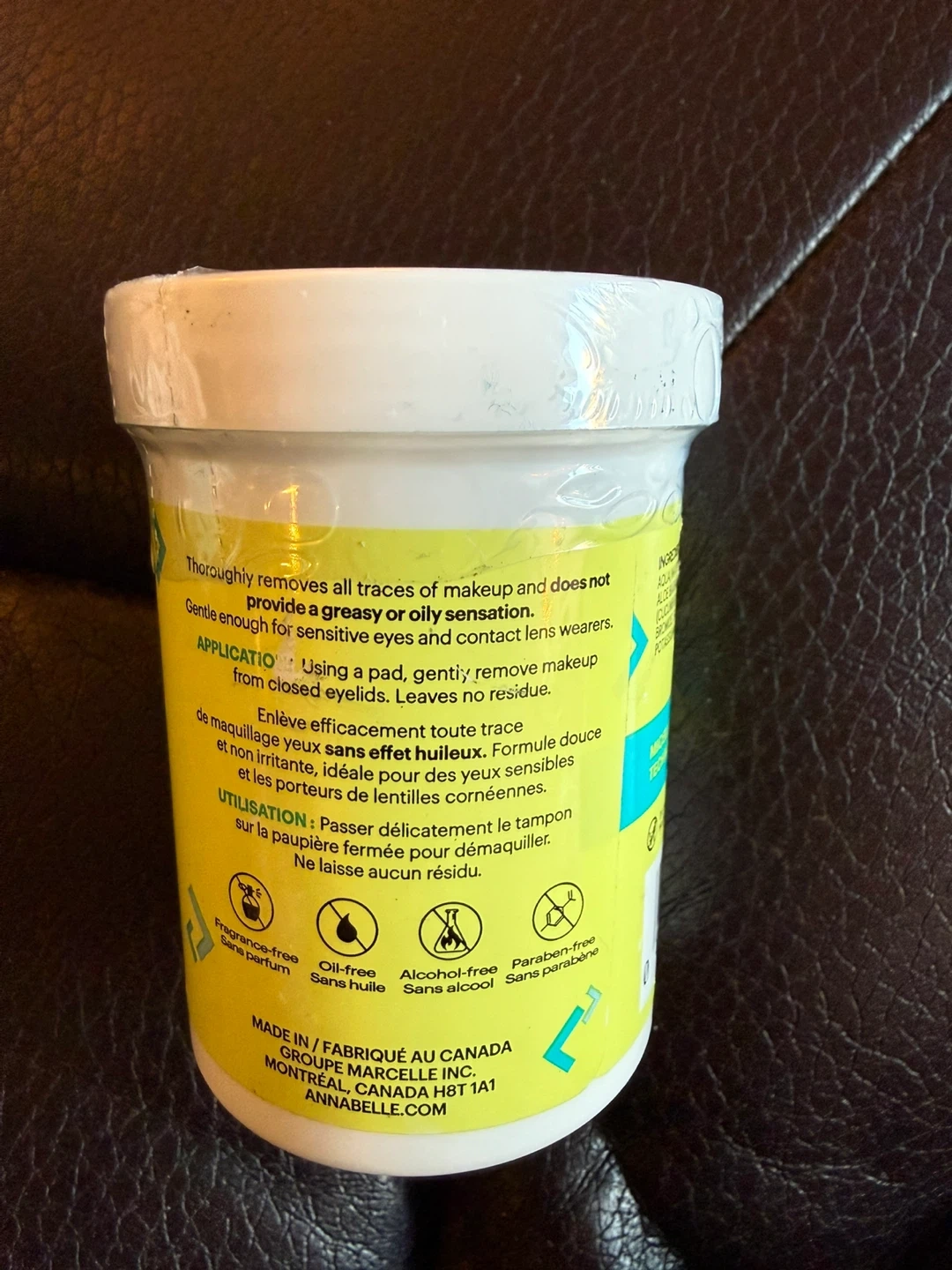 Annabelle Oil-Free Eye Makeup Remover Pads thoroughly remove all traces of makeup without leaving a greasy sensation. Gentle enough for sensitive eyes and contact lens wearers. Made in Canada. Sealed.
