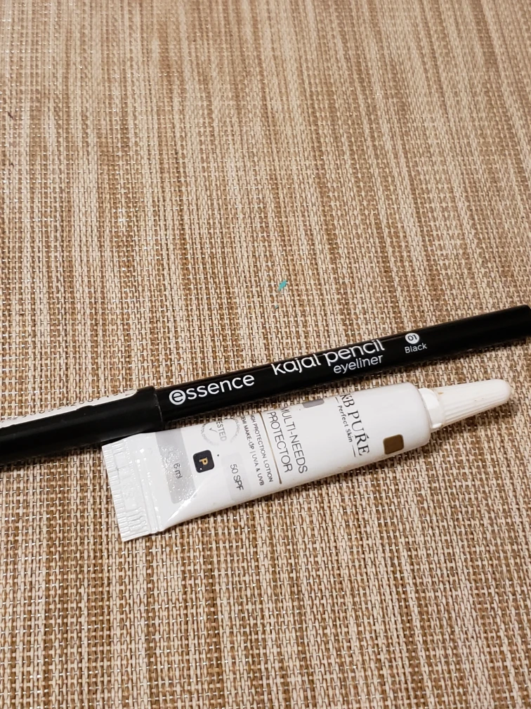 Essence Kajal Pencil eyeliner in black. Also included is a KB Pure Multi-Needs Protector SPF 50 lotion. It's been in my drawer for some time, but I've never used it.