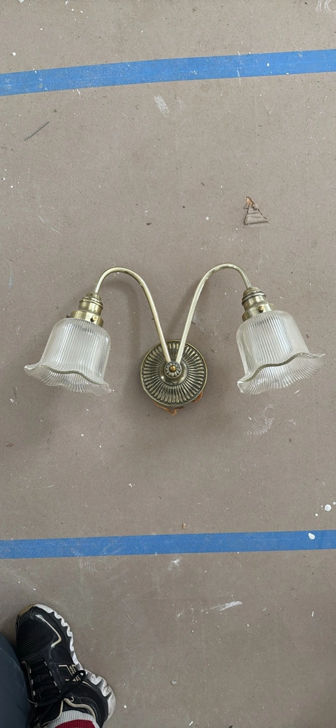 Antique Brass Double Wall Sconce with Fluted Glass Shades