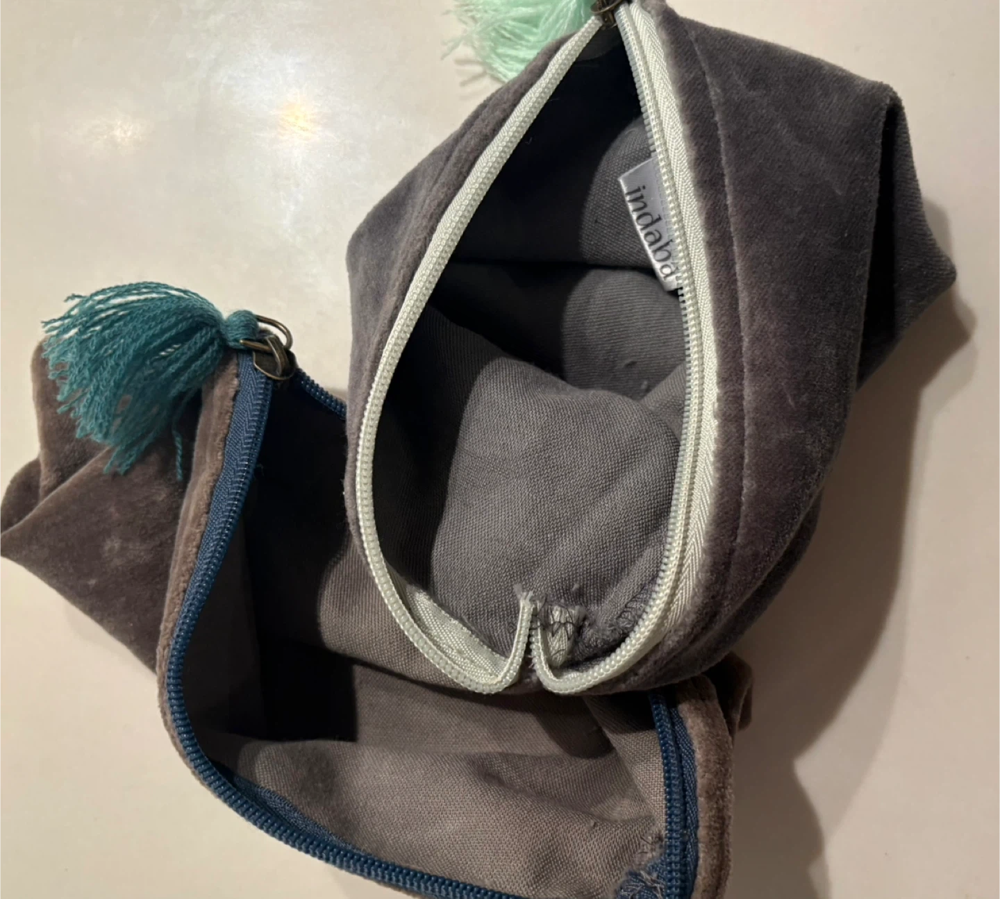 Set of 3 Indaba velvet zipper pouches with tassel zipper pulls