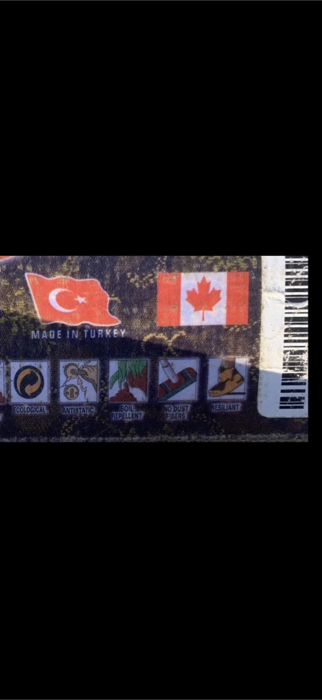 It is made in turkey and has the beautiful turkish accents and designs fitted on. It is also non flammable, anti bacteria, sunlight resistant, water repellant, soil repellent, anti-static, anti-skid, no dust fibres, resilient, pin-pointed and ecological.