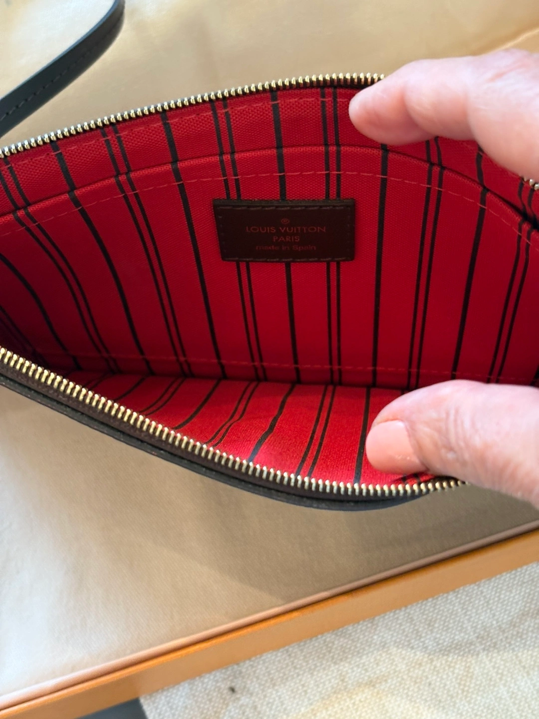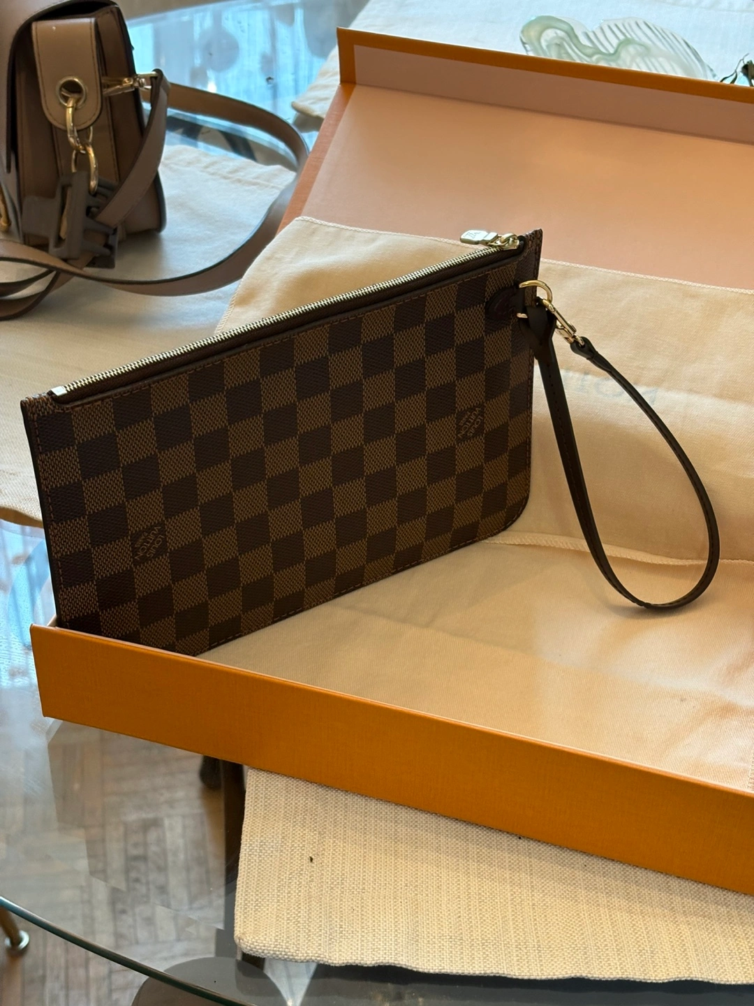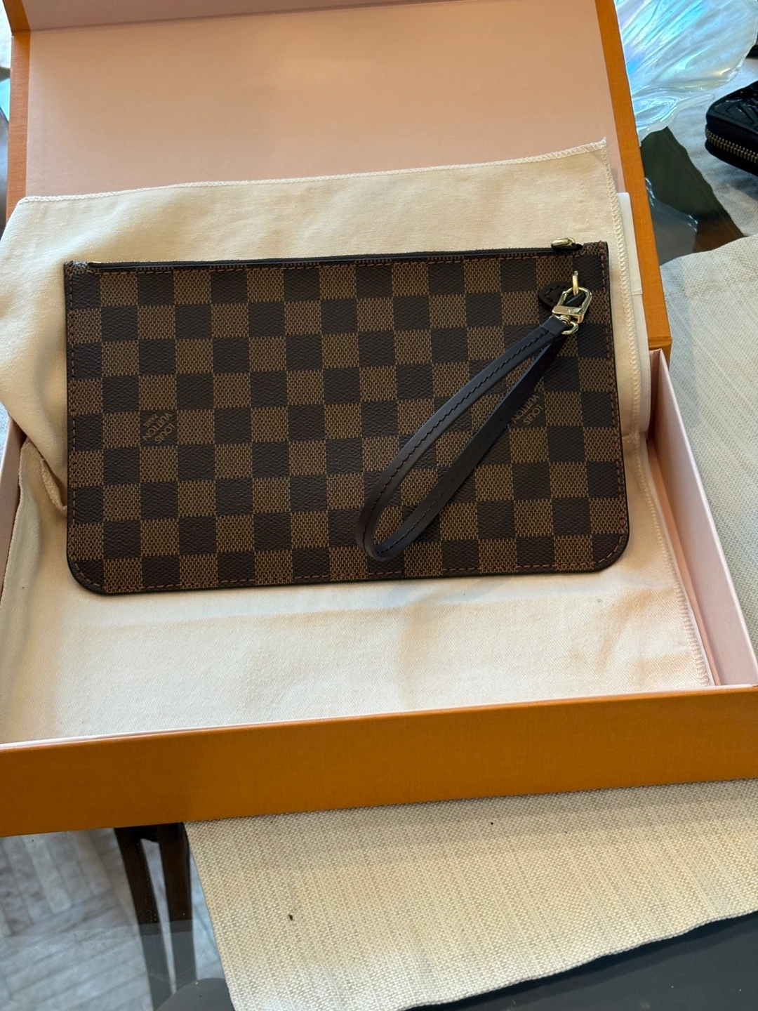 Buy & SellLouis Vuitton PochetteLouis Vuitton Pochette$500Brown and beige checkered pattern. Zip closure. Leather wrist strap. Comes with dust bag and box.ConditionNewSizeMM W10”XH6”BrandLouis VuittonWHERE TO MEETAny coffee shopView MapSELLERverifiedMariaForest Hill S55665 reviews6 chats·7 favorites·560 viewsSEND CHAT TO SELLERHi Maria! I’m interested in your listing.Hi Maria! I’m interested in your listing.Get the Karrot app to chatSign In to chat