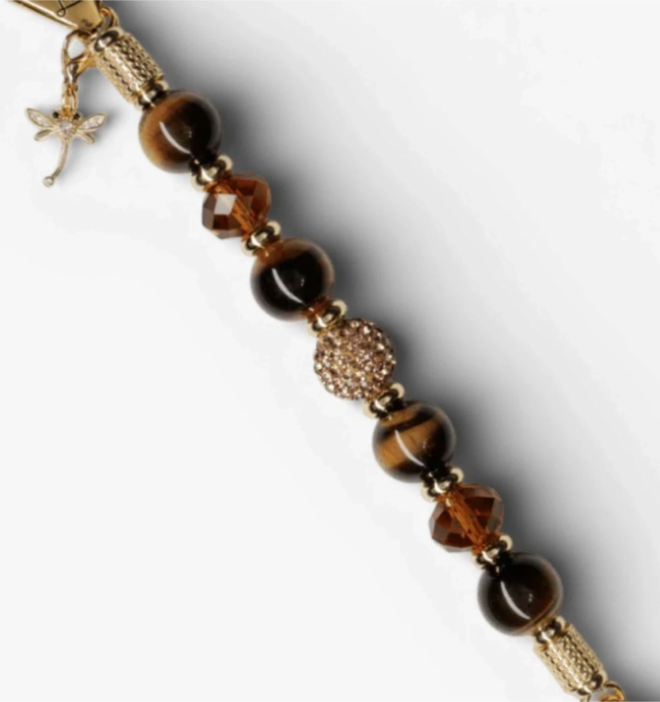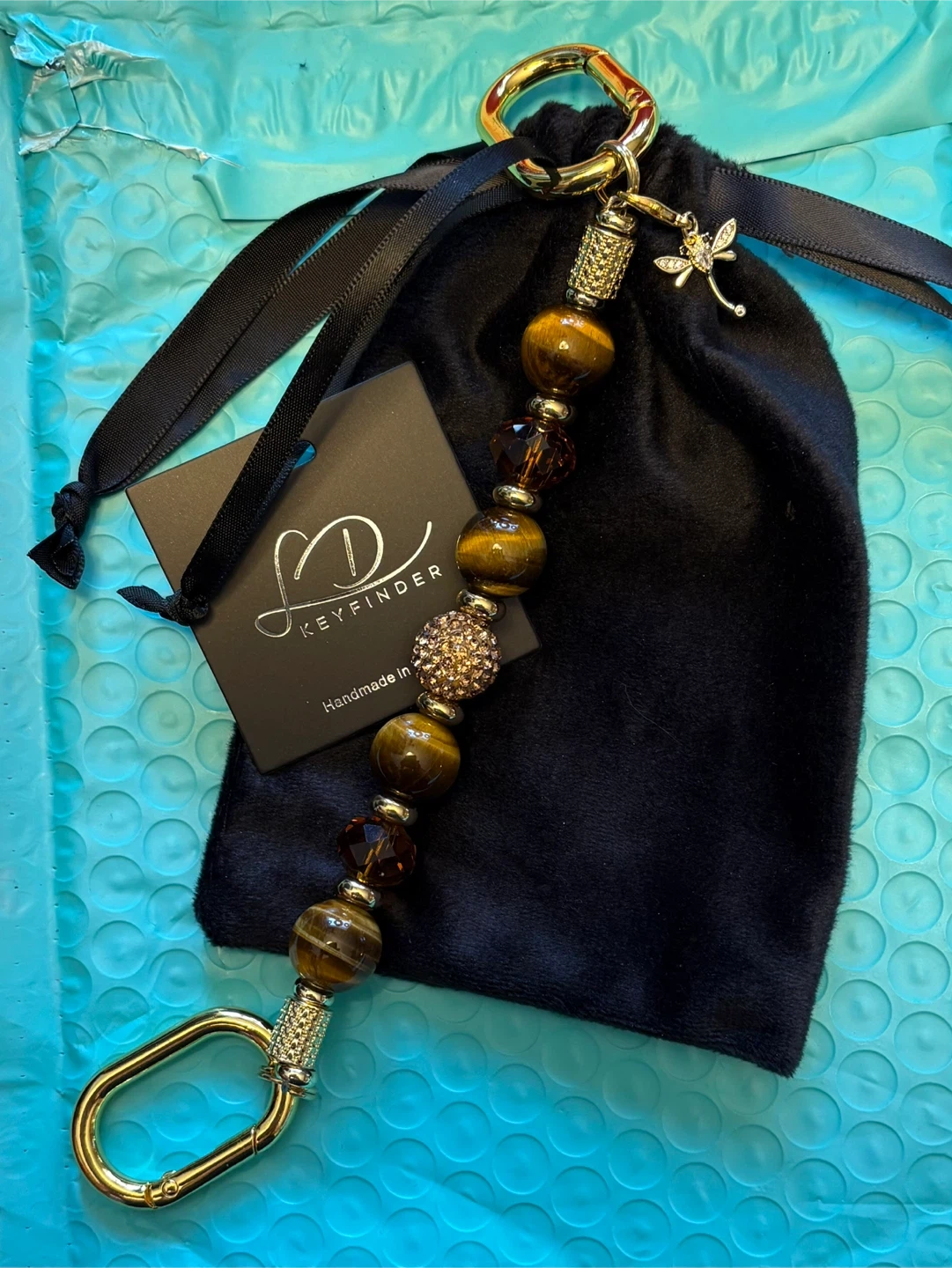 Add a touch of style to your keys or bag with this KEYFINDER keychain. It features genuine tiger eye beads, sparkling accent beads, and a delicate dragonfly charm. A soft black pouch is also included for storage.