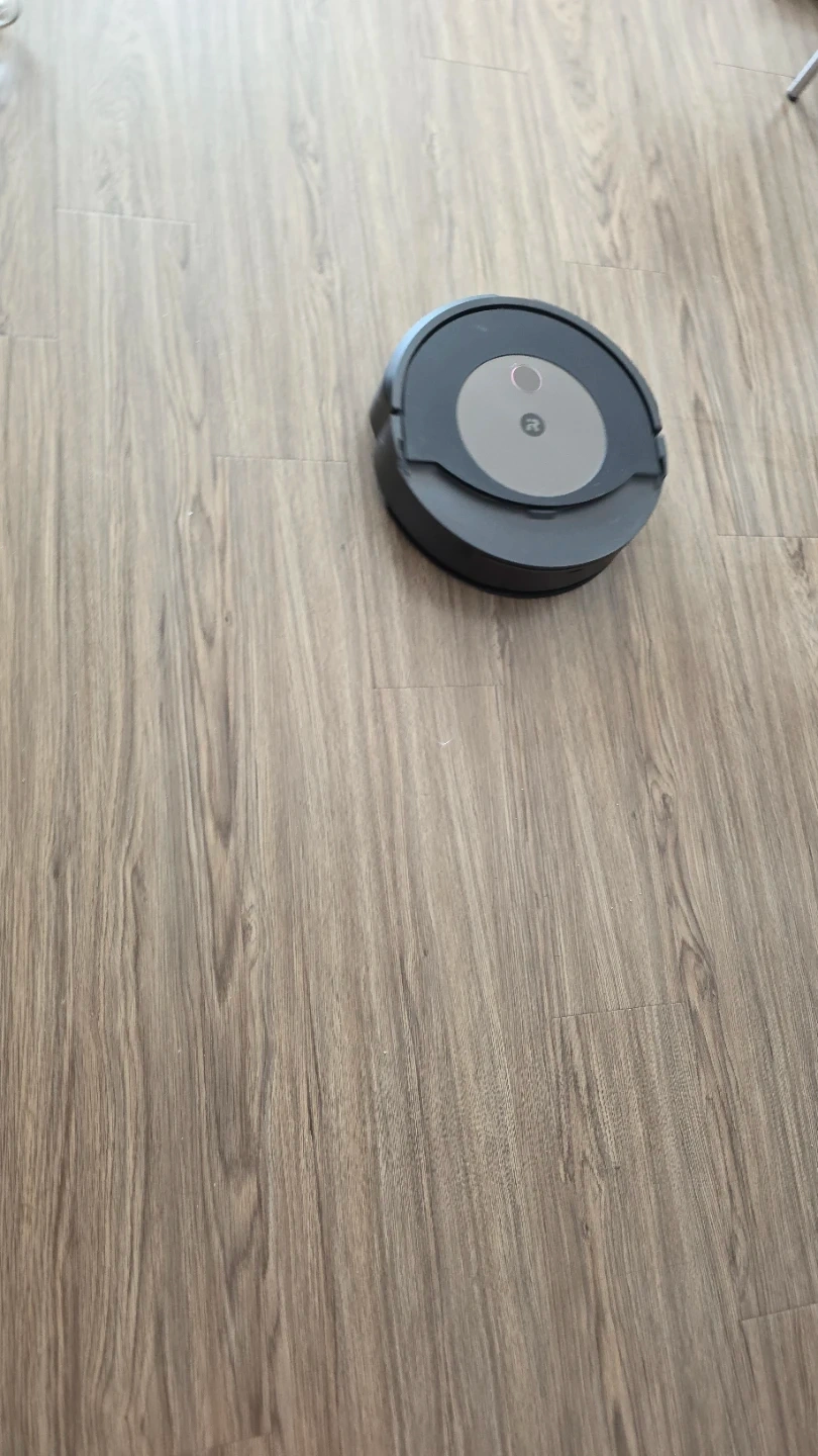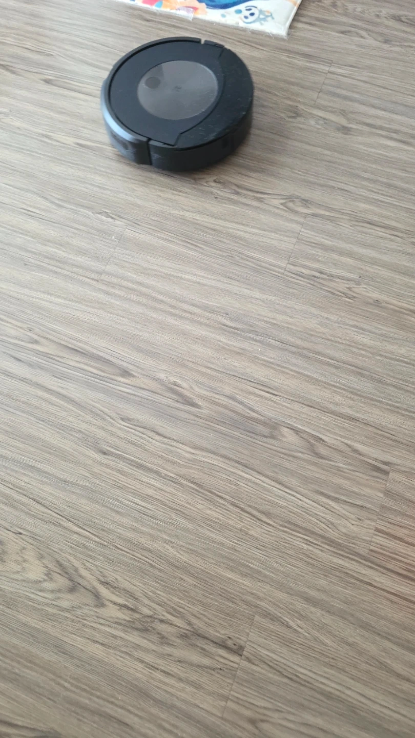 This is a dock for an iRobot Roomba vacuum. It's designed to empty the bin and refill the tank. It features a modern wood-grain top.