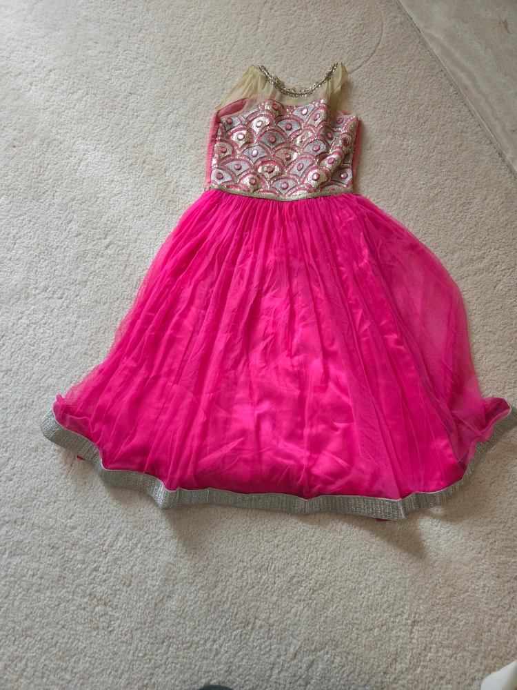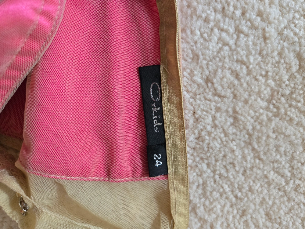 A beautiful pink Orkids dress in size 24. It features a lovely design with a tulle skirt and sequined bodice. Perfect for parties or special occasions!