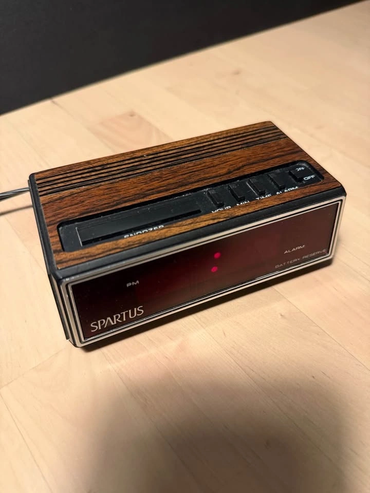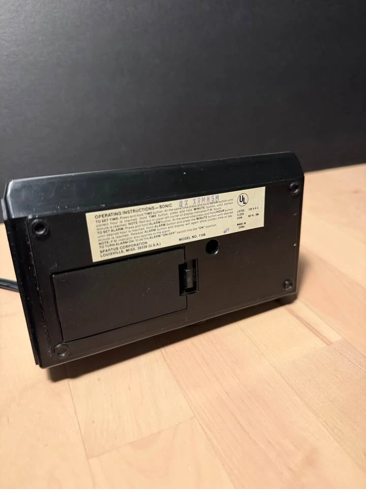 Spartus 1108 digital alarm clock. Can be operated with a plug or batteries. If the ad is still up, it’s available. Pick up in Etobicoke near Kipling TTC station. Feel free to message if you have any questions!