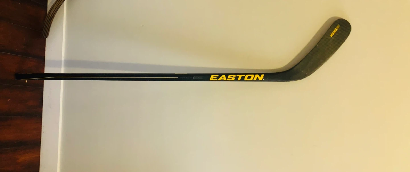 Easton 65s hockey stick. It's black with yellow Easton branding. Features a composite construction for lightweight play. Suitable for players looking for a reliable stick