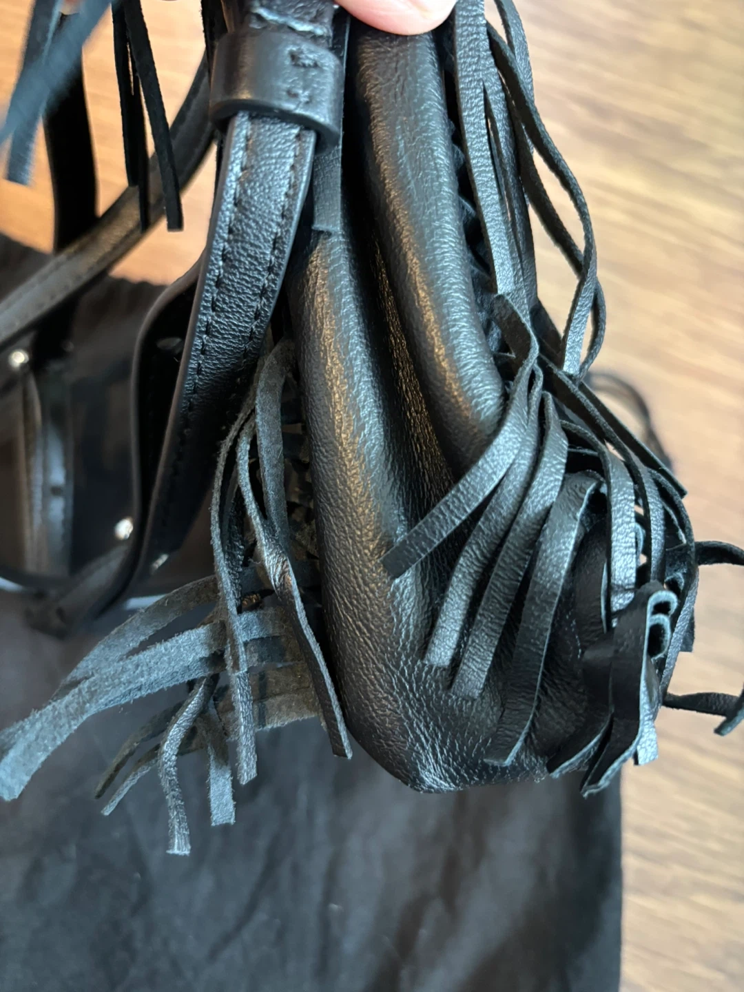 Maje Black Leather Fringe Handbag