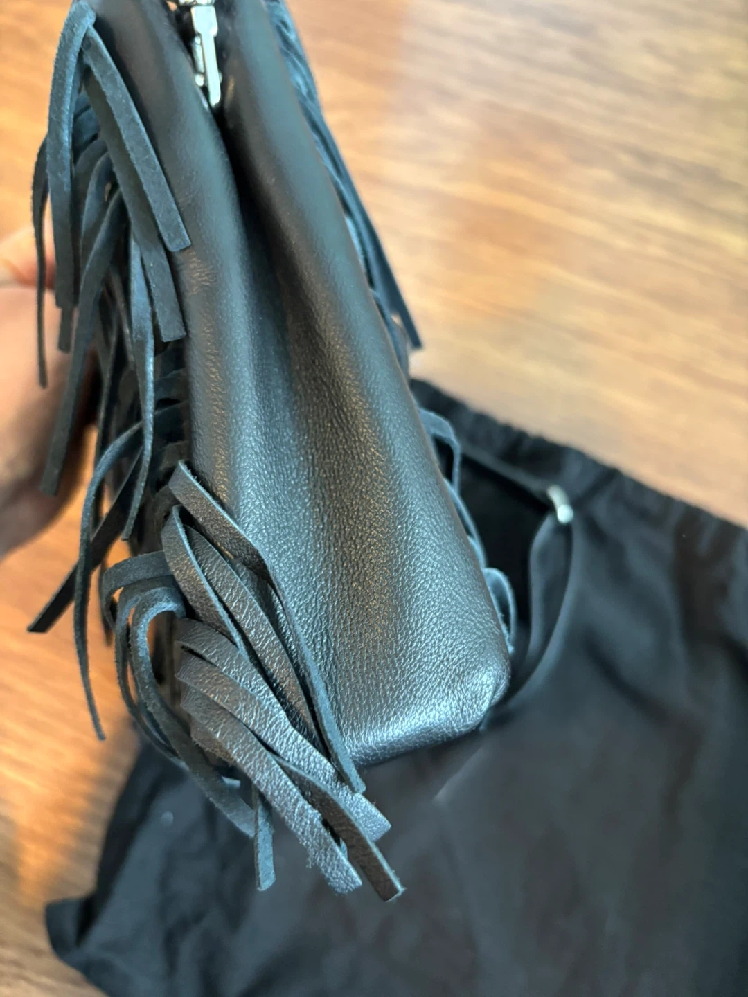 Maje Black Leather Fringe Handbag