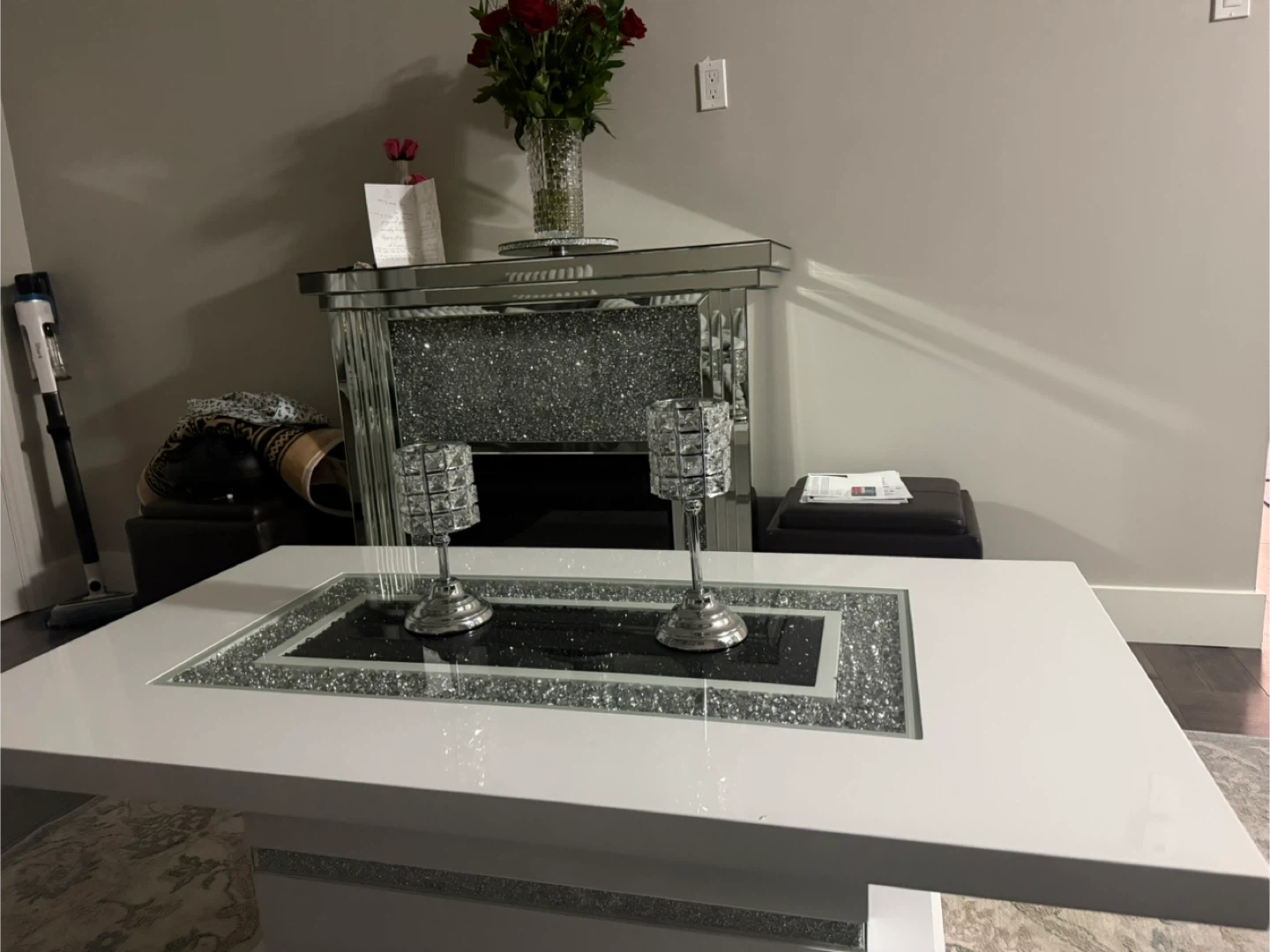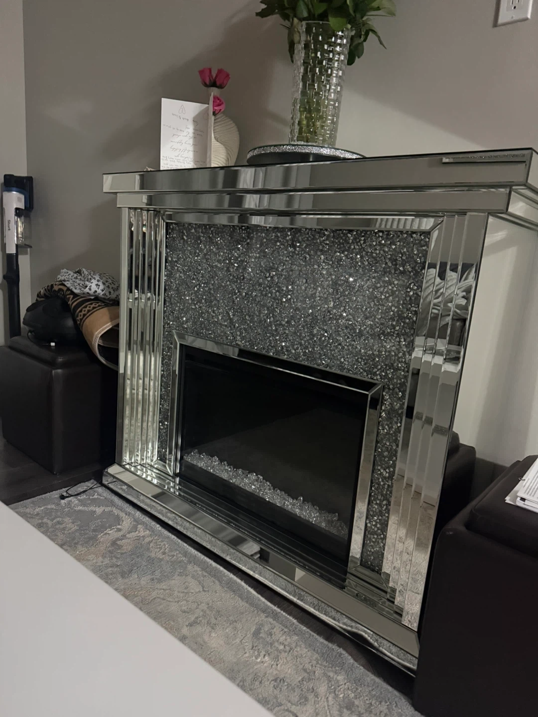 Glamorous Mirrored Crushed Crystal Fireplace Electric