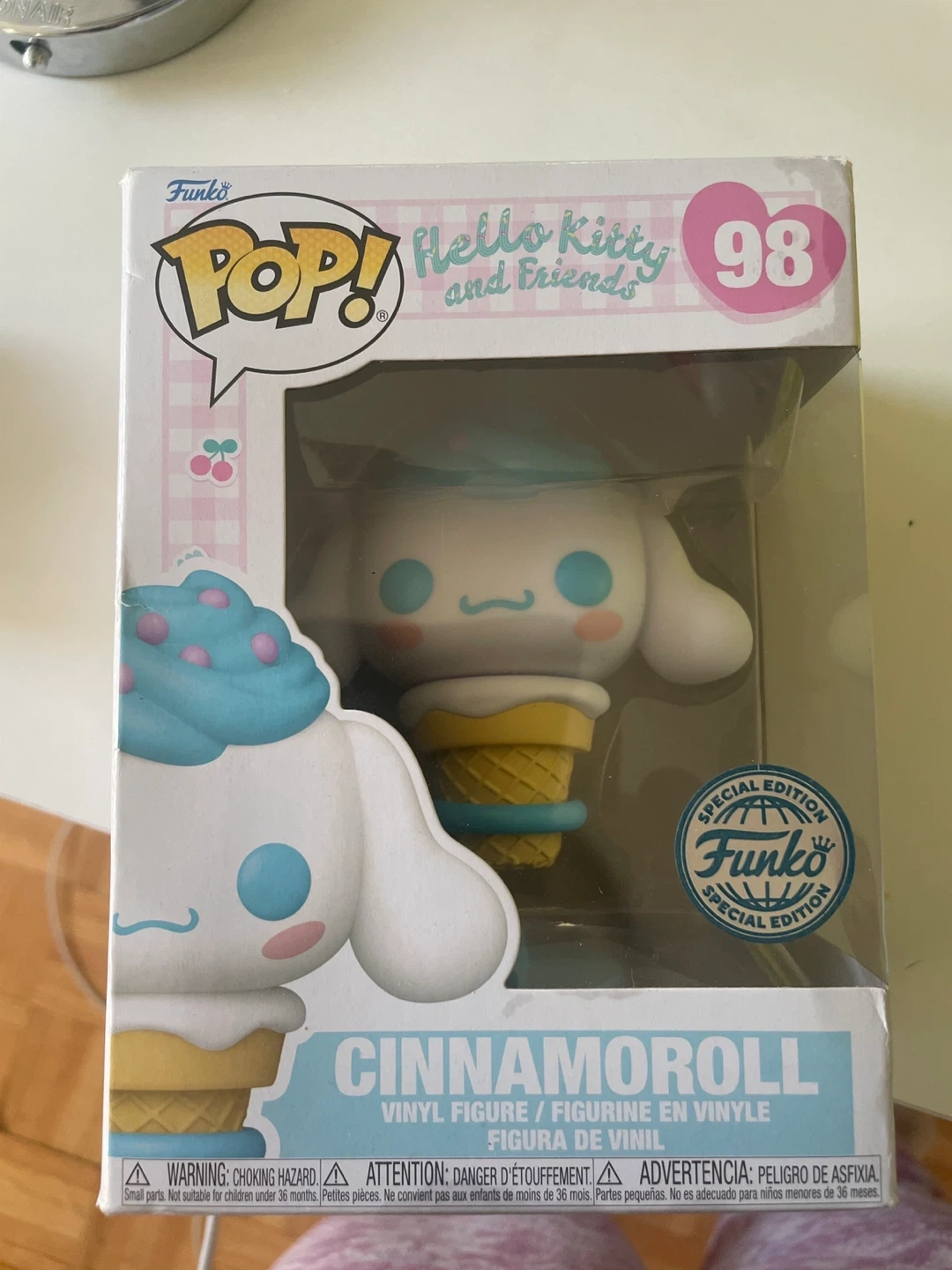 Selling a Funko Pop! figure of Cinnamoroll from the Hello Kitty and Friends series, numbered 98! This is a special edition vinyl figure and comes in its original box