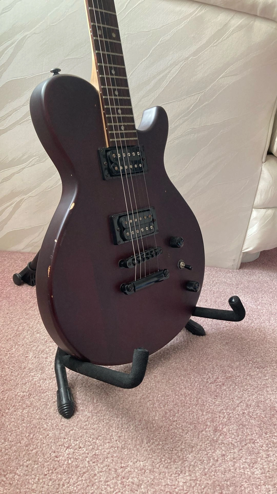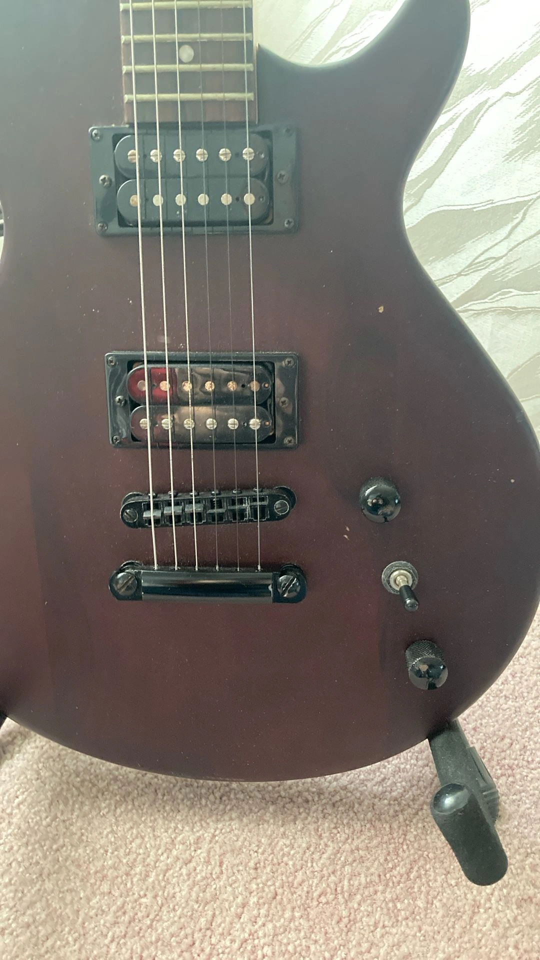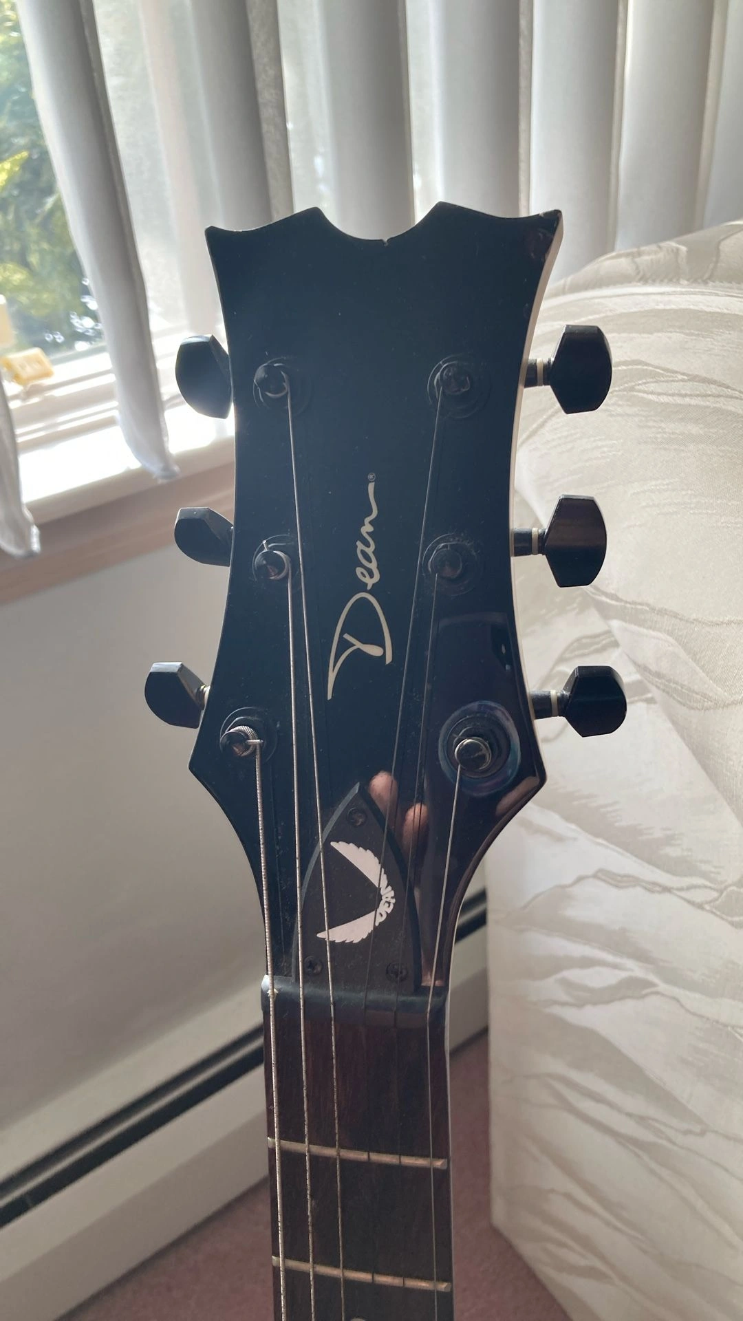 Dean Evo XM in Satin Natural, maple neck with a rosewood fretboard. I can pair with a Fender amplifier for an additional $50. Body Color: Satin Natural, Size: 4/4, Right-handed, Type: Electric, Brand: Dean.