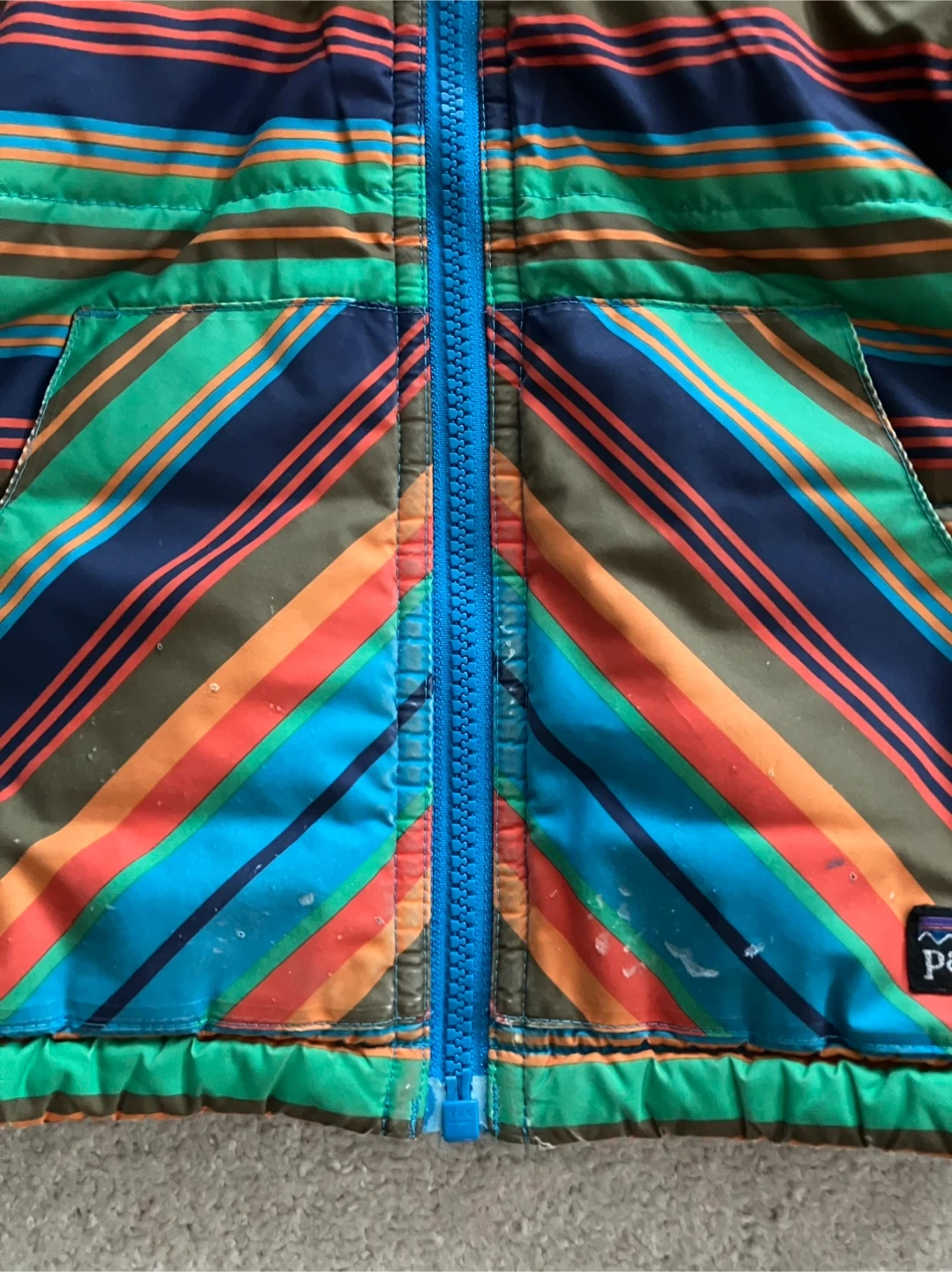 Keep your little one warm with this Patagonia baby reversible Tribbles jacket!