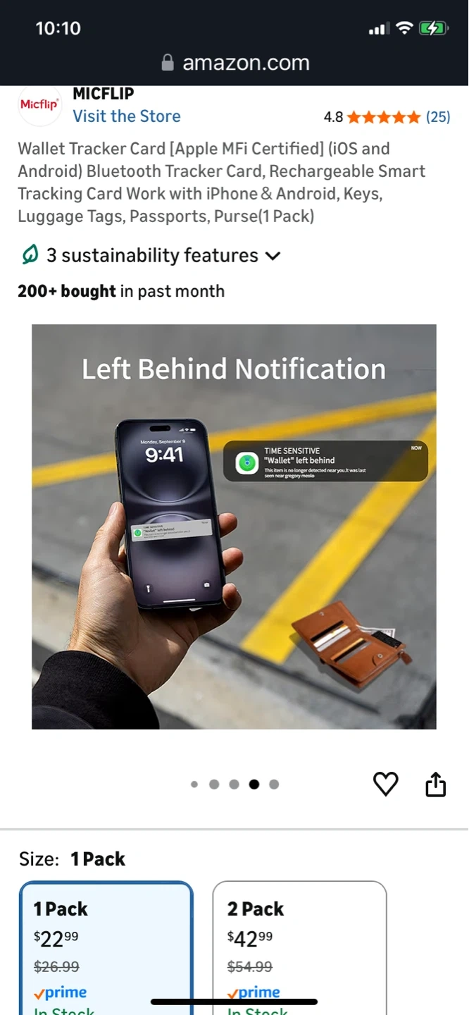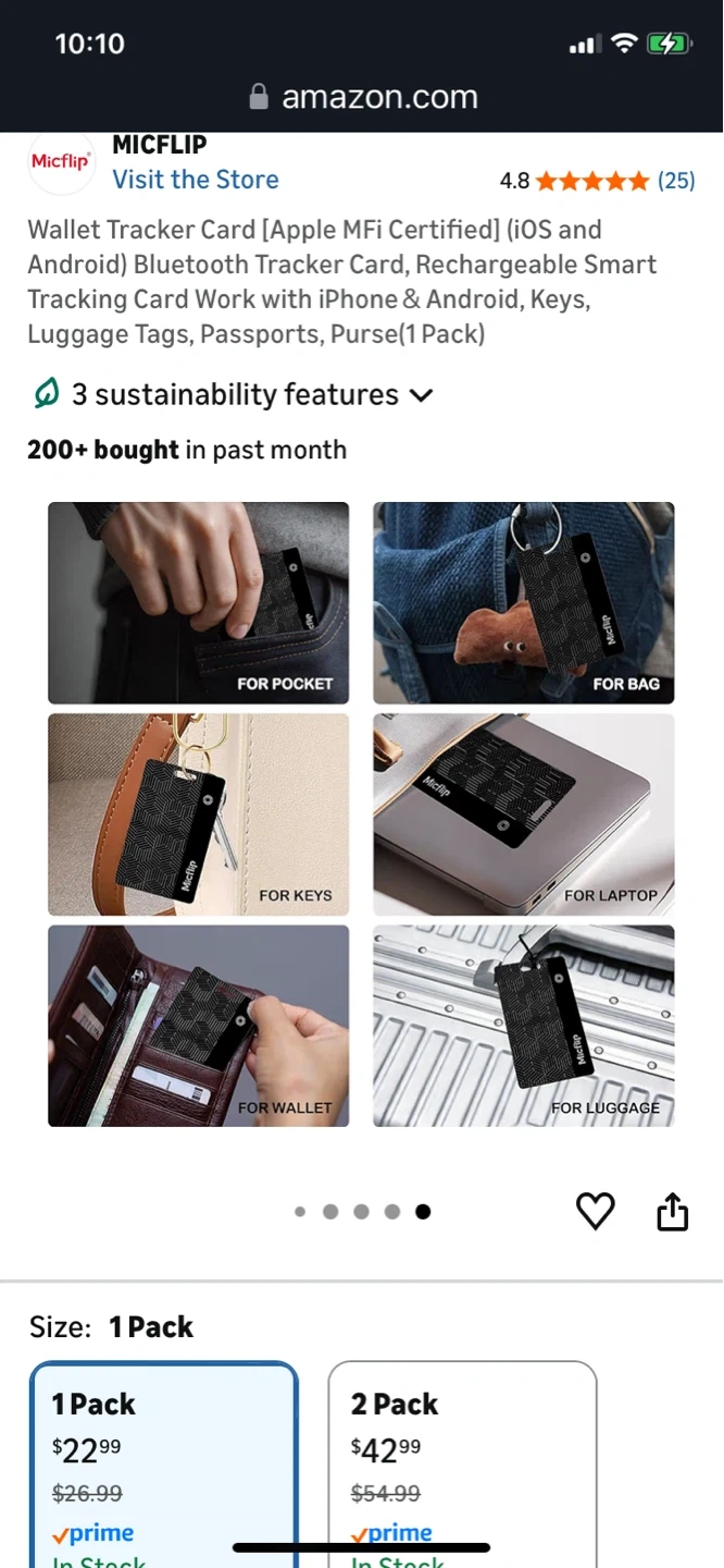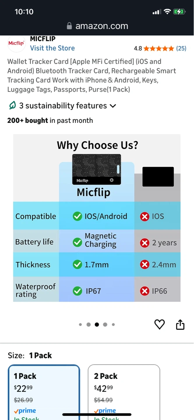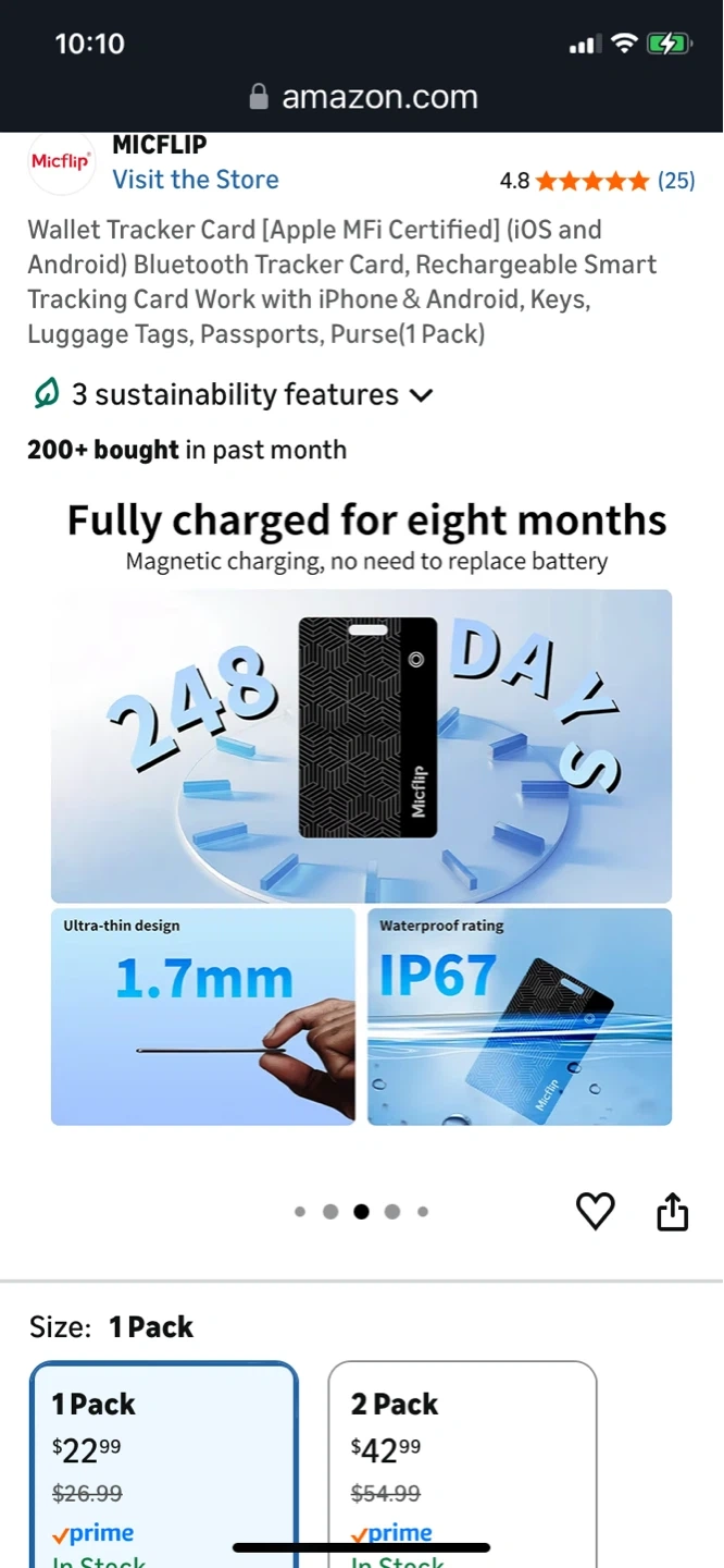 This is a Micflip wallet tracker card. It's thin and lightweight, designed for use with iOS and Android devices. It features magnetic charging and has a waterproof rating of IP67.