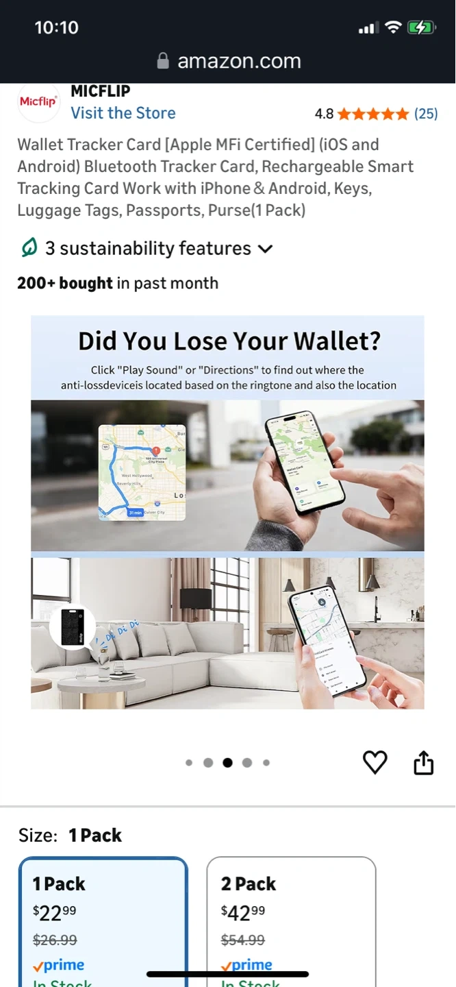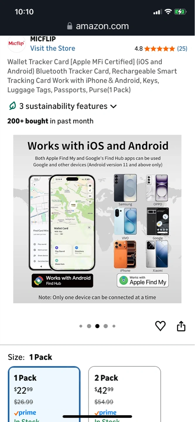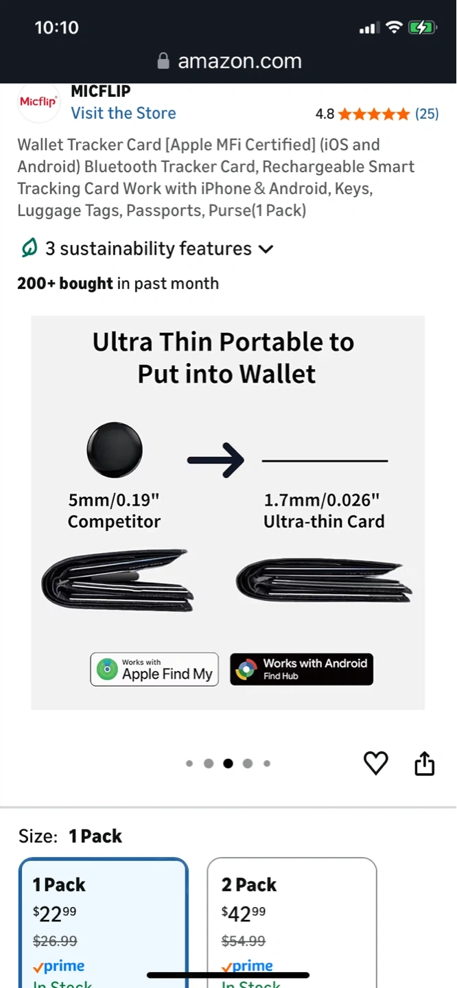 This is a Micflip wallet tracker card. It's thin and lightweight, designed for use with iOS and Android devices. It features magnetic charging and has a waterproof rating of IP67.