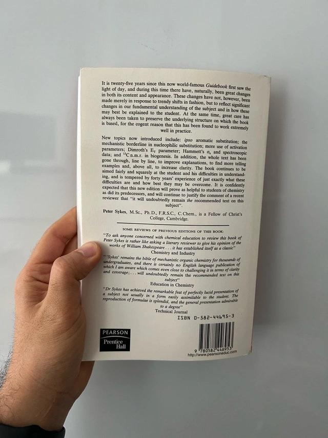 Selling "A Guidebook to Mechanism in Organic Chemistry" (6th Edition) by Peter Sykes. Paperback, sixth edition. In very good condition: no missing or torn pages, minimal cover wear. Essential reference for organic chemistry students, with clear mechanisms and explanations. A well-known classic guidebook in chemistry education. Pickup in Toronto or Mississauga.