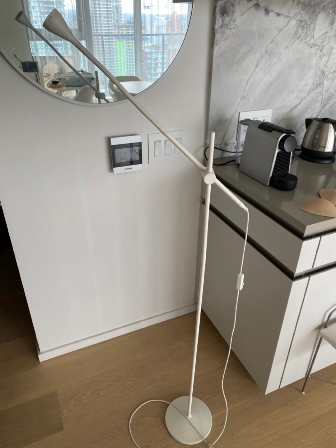 Selling a stylish white floor lamp! It’s in great condition and would look lovely in any room. Perfect for adding some extra light to your living space or bedroom