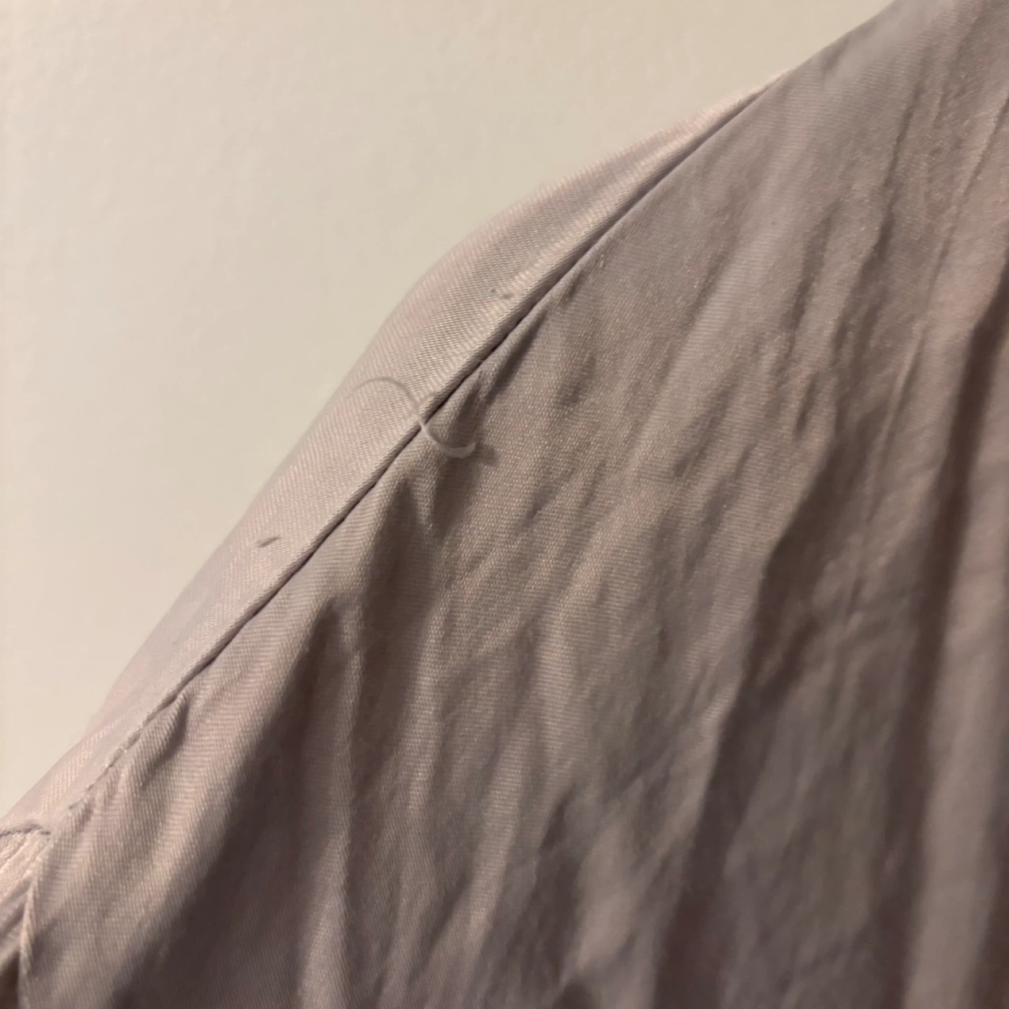 This is a Zara women's button-up shirt. It's a size XS in a light lilac colour. The fabric is lightweight and has a smooth feel.