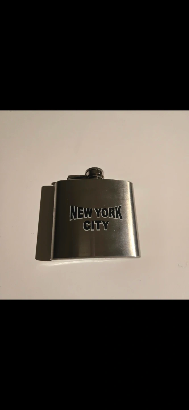This is a stainless steel flask featuring the "New York City" text. It holds 5 oz and is made of durable stainless steel. It's a great keepsake for any New York City enthusiast!