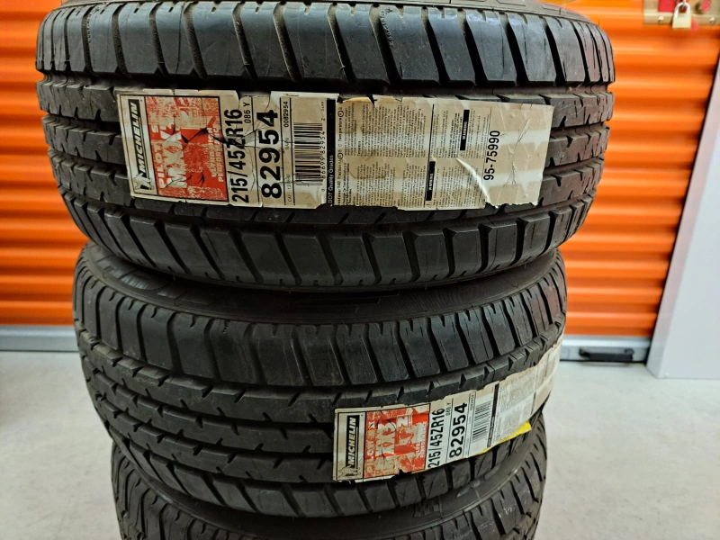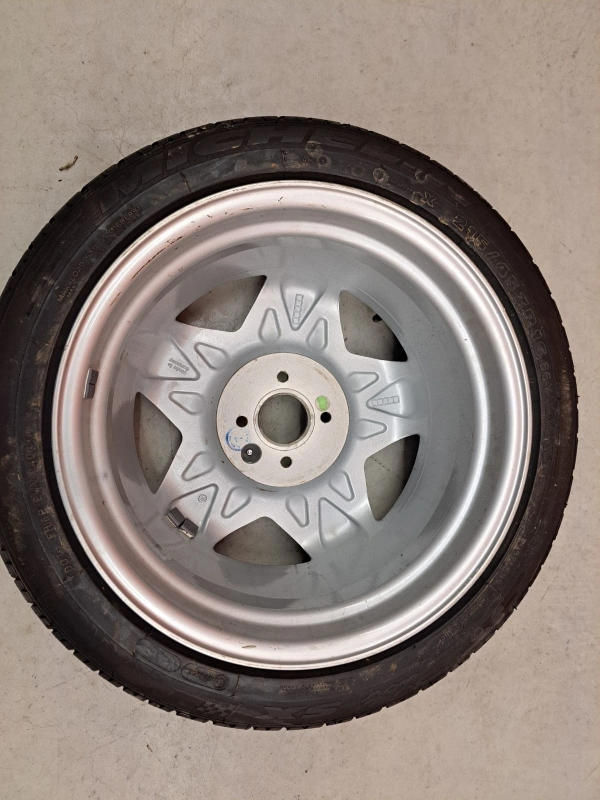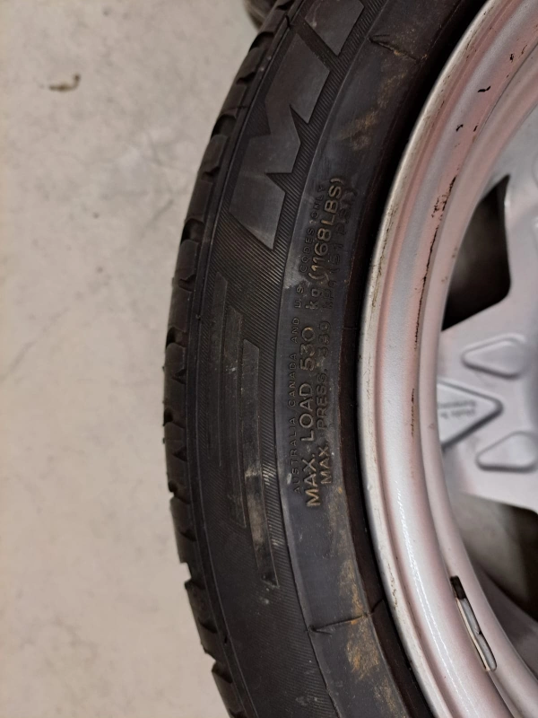 4 tires on rims. Silver colour rims. Black tires. Could be an amazing set to complete your car's look.