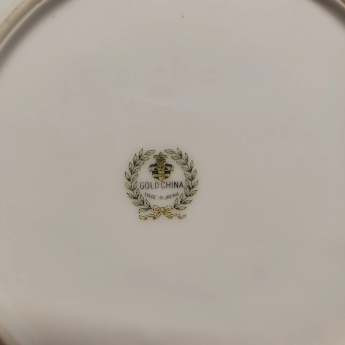 Selling a lovely Gold China plate with a floral design. It's perfect for adding a touch of elegance to your dining table or as a decorative piece. The plate features beautiful floral patterns around the rim, making it a charming addition to any collection. Made in Japan.