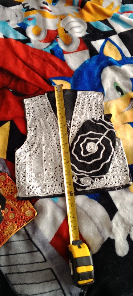 Stunning traditional waistcoat and hat set. Black velvet waistcoat with silver embroidery. Matching hat. Unique and beautiful. Perfect for cultural events or costume.