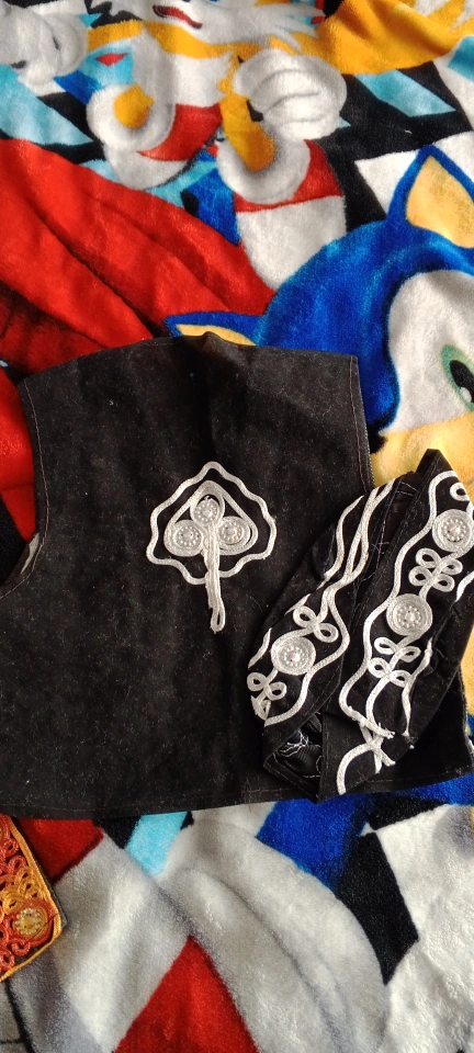 Stunning traditional waistcoat and hat set. Black velvet waistcoat with silver embroidery. Matching hat. Unique and beautiful. Perfect for cultural events or costume.