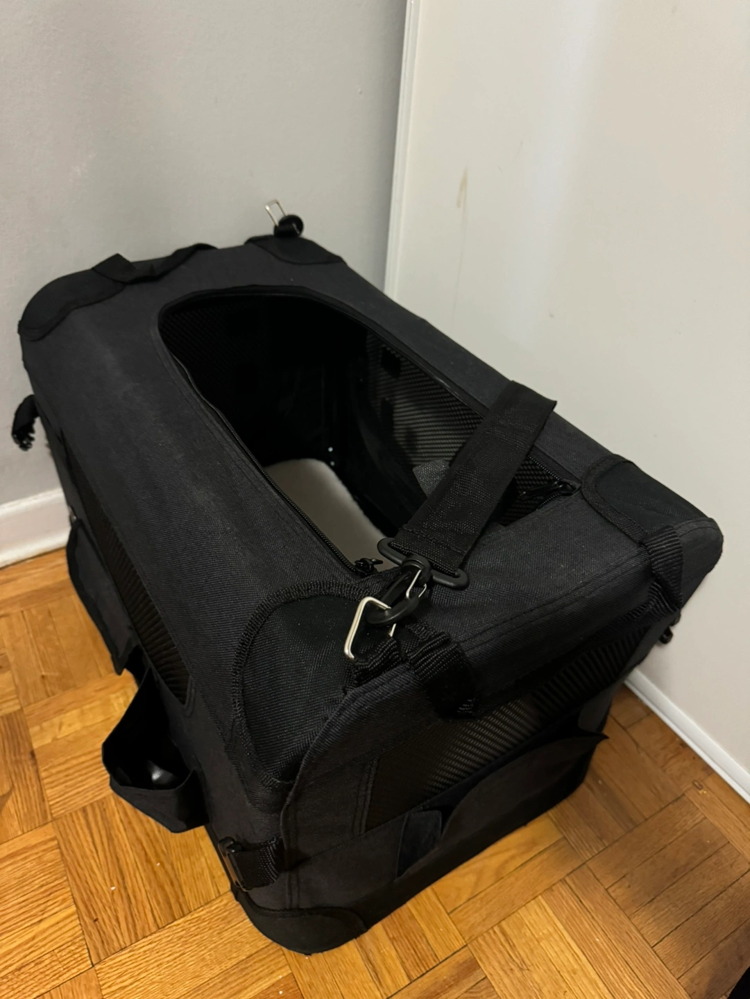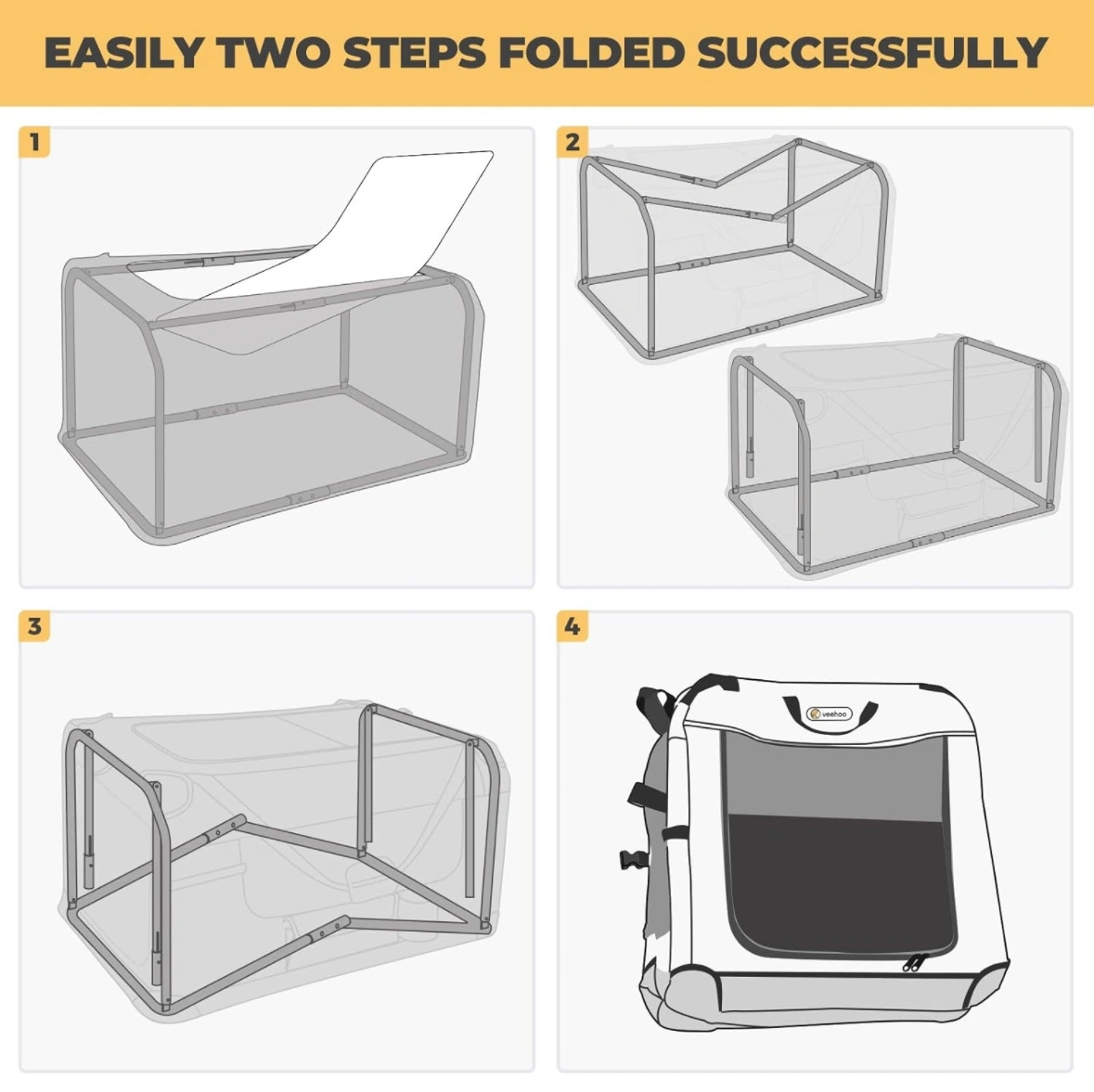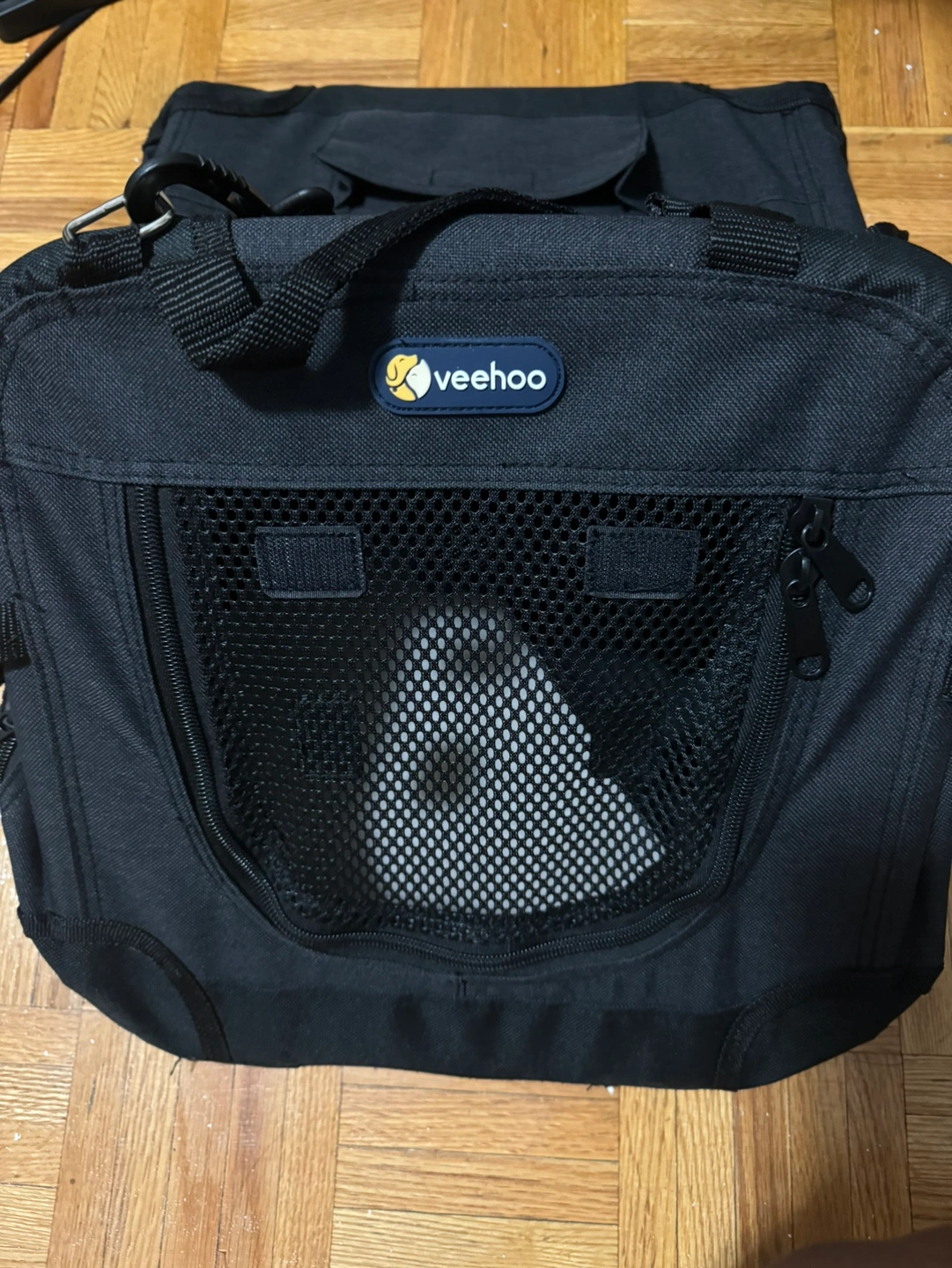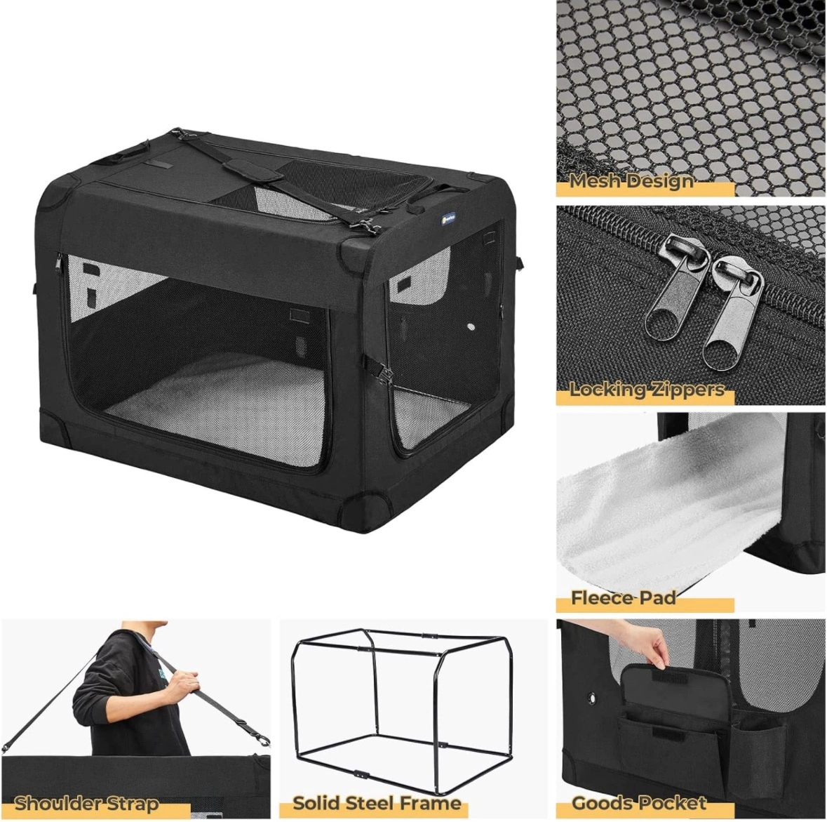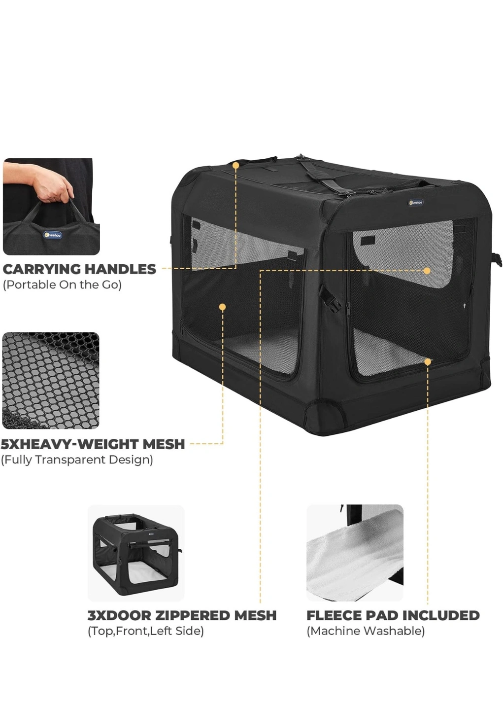 This crate is black in colour. It can be folded up for easy storage and is suitable for small sized dogs. Lightweight frame and special locking mechanism. Good for you little fur babies. Perfect for indoor or outdoor trips.