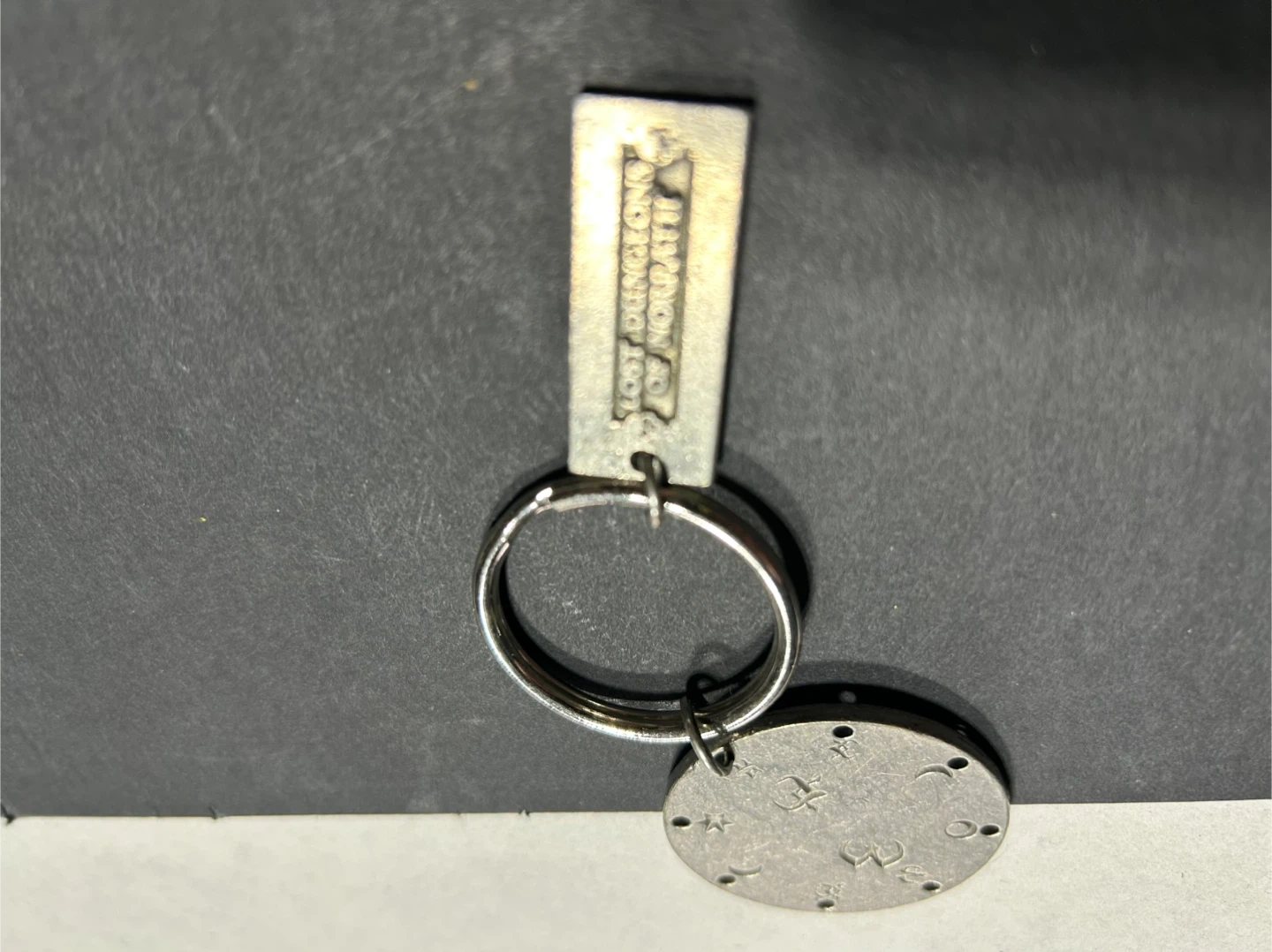 This metal keychain features the EverQuest logo on one tag and symbols from the Lost Dungeons of Norrath expansion on a circular charm. It's attached to a standard split ring. Perfect for any EverQuest fan!