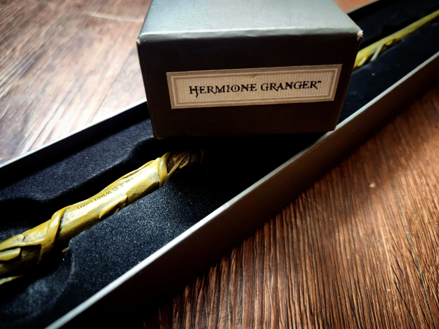 This is the Second Generation Interactive Wand for Hermione Granger. It's housed in its original box and comes with the wand itself. This wand is perfect for any Harry Potter fan!