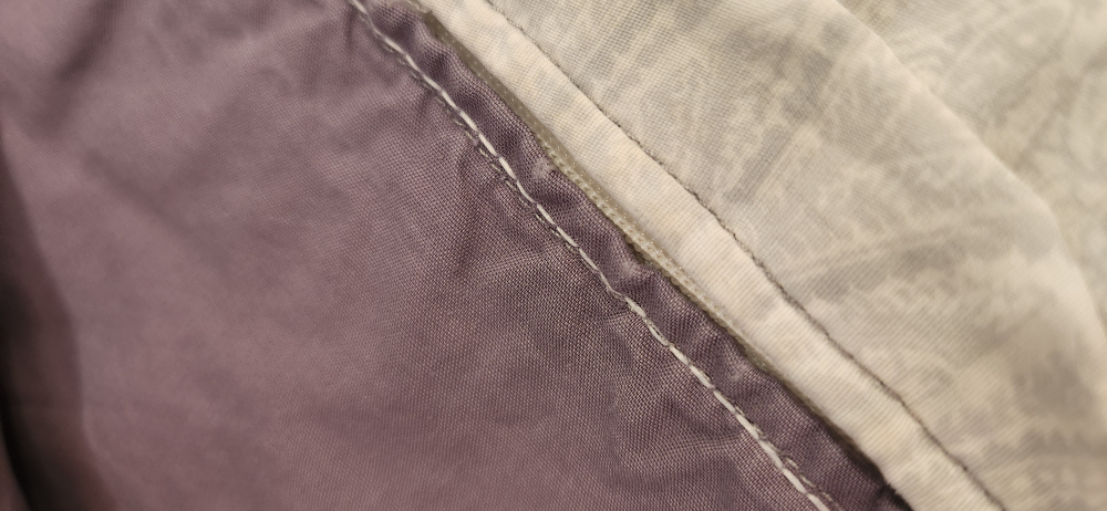 Selling a gently used comforter with a lovely purple and grey pattern. It's in good condition with working zipper closure.