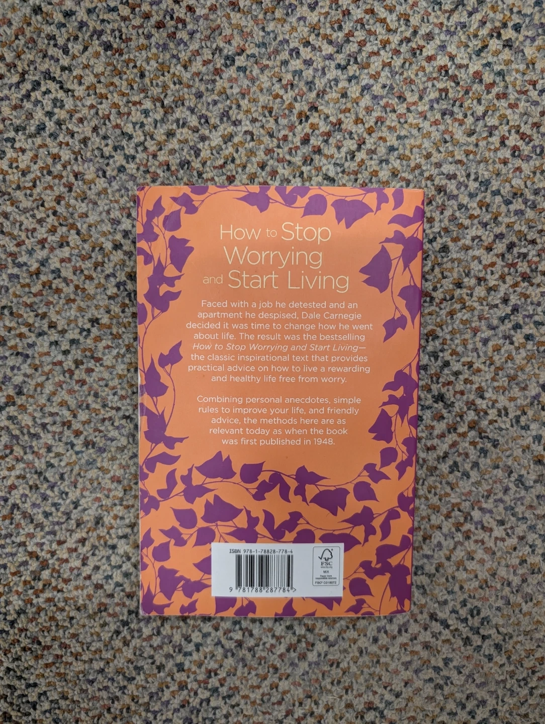 This is Dale Carnegie's classic self-help book, "How to Stop Worrying and Start Living." It offers practical advice on managing worry and improving mental well-being. The book was first published in 1948.